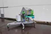 This dry bin filler has a rotating disk and a mobile head for filling two bins: one on the right and one on the left.