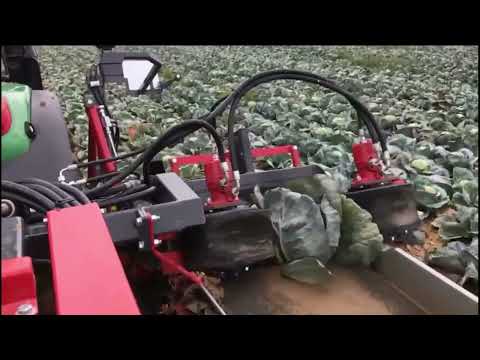 - Ausgestattet mit einer schrägen Walze, die die Blätter vom Kohl trennt, wobei die Blätter auf den Boden fallen
