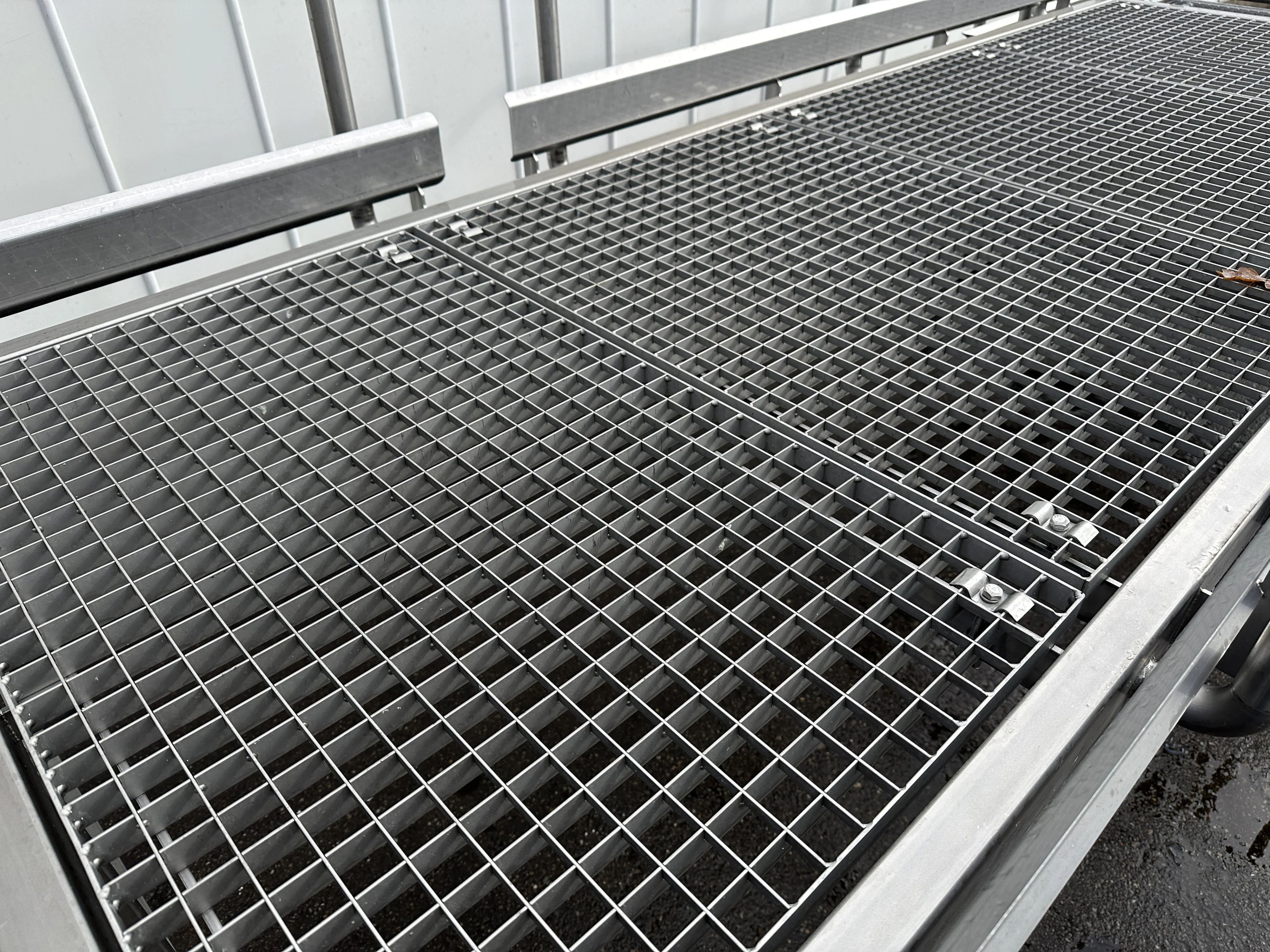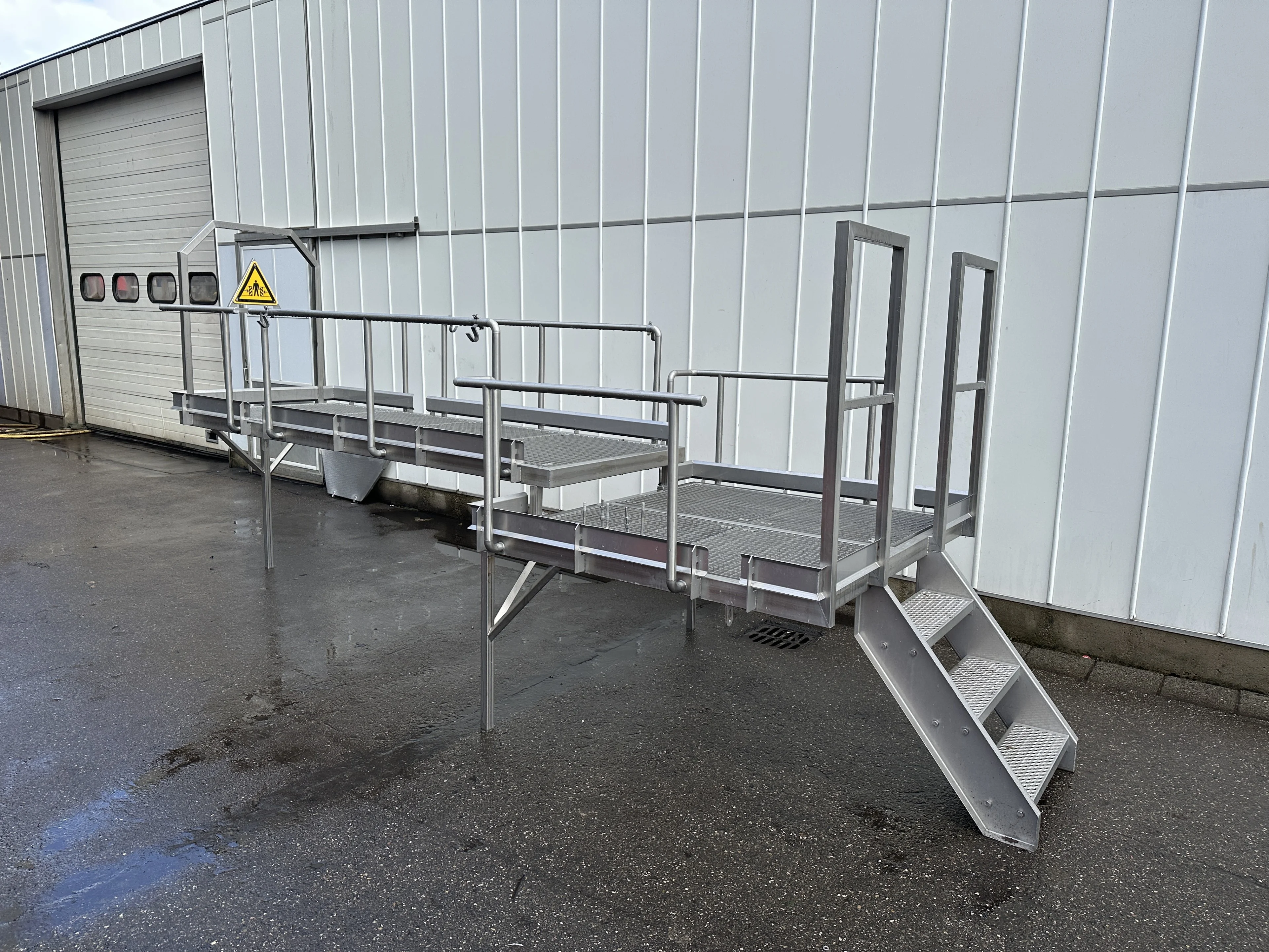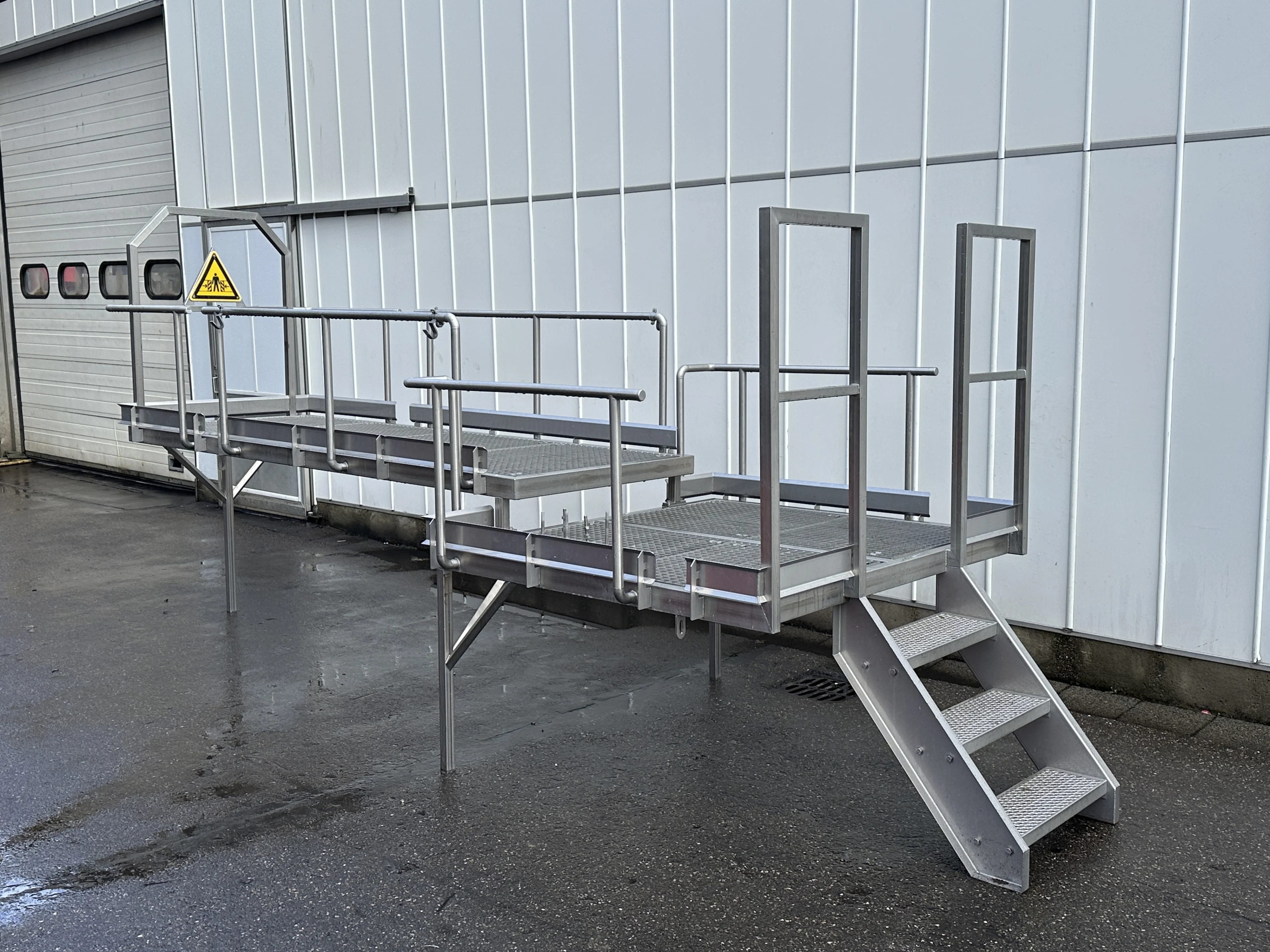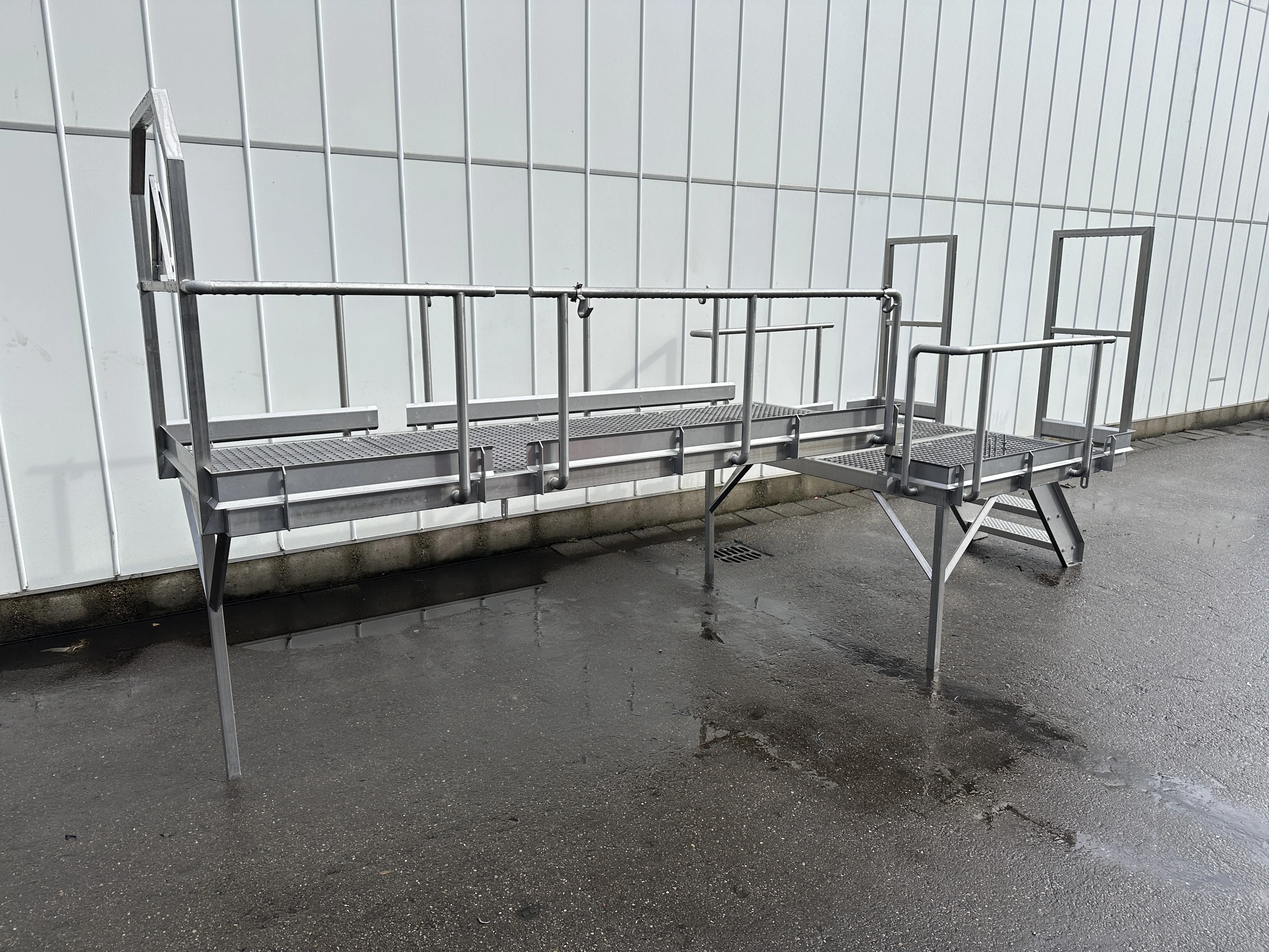 Plattform/Plateau aus Edelstahl 485 x 165 cm mit Handlauf und Treppe