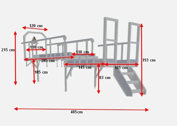 - Second platform approximately 285 x 110 cm