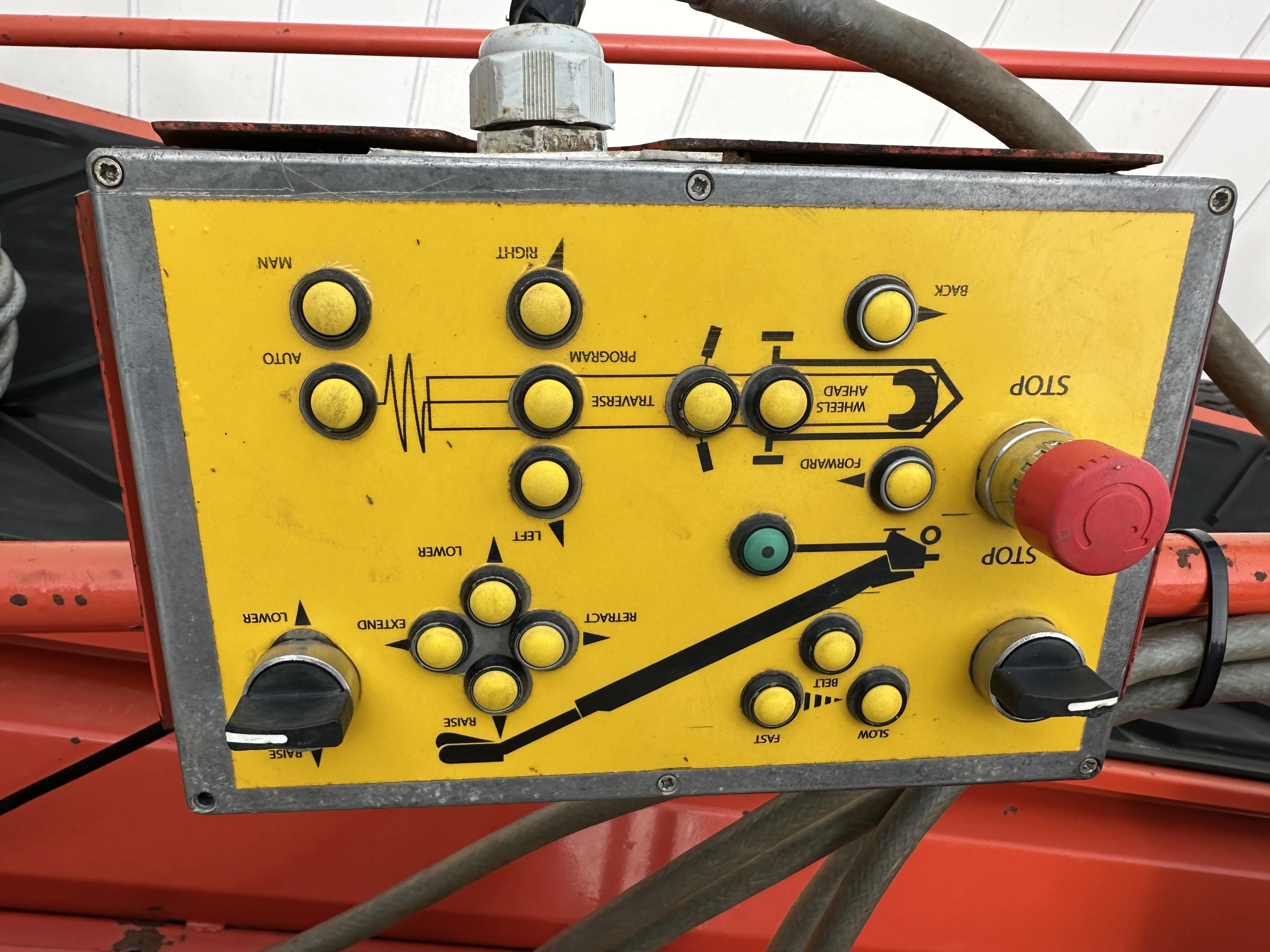 - Die Maschine ist ausschließlich manuell bedienbar. Schwenken, Fahren sowie Ein- und Ausfahren erfolgen nicht automatisch, sondern müssen manuell über Tasten bedient werden.