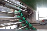 This machine is equipped with lateral placed grading rollers out of stainless steel. The distance between these rollers changes in steps over the different grading stages.