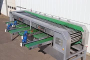 Conveyors are placed under the machine to transport the graded sizes to the side. One conveyor for each grading size.