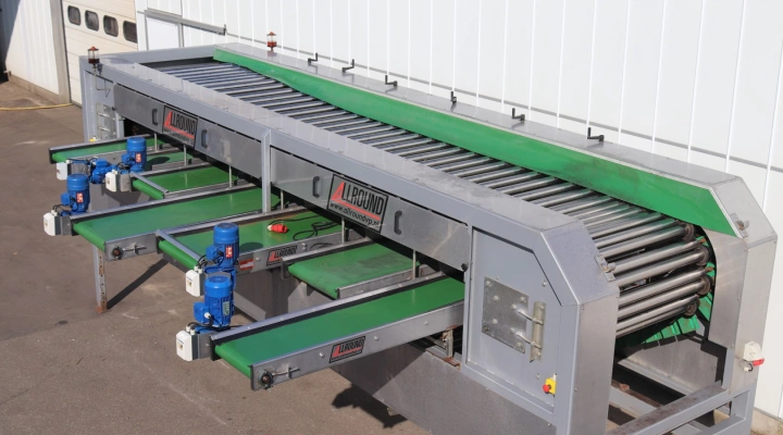 Allround radial rollergrader with 7 product conveyors