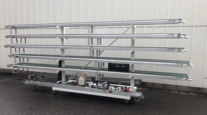 62 meter Martin Stolze Easymax potplant conveyor transport system with adjustable speed.
