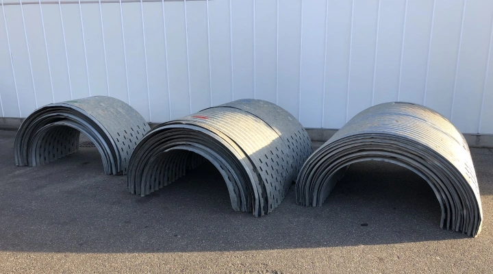 The semi circular ventilation ducts are suitable for ventilation of agriculture products, such as potatoes, onions, carrots and tuberous products. The ducts are made of high quality galvanised sheet steel, which assures a long service life.