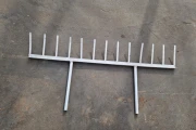 A pot fork is a practical aid. A pot fork is used to take several pots off a belt conveyor at the same time and put them down at another location. This saves time and the distance between the pots is more even.