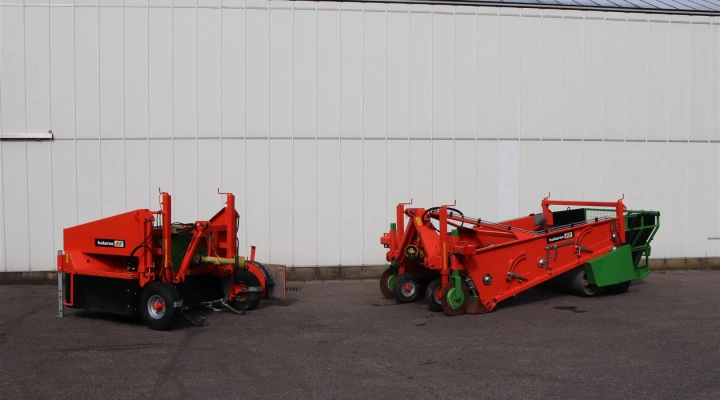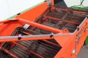 The onions are picked up from the ground by a square harvesting axle. In addition to this square axle, coulter discs and a V-shaped plow are mounted on each side.