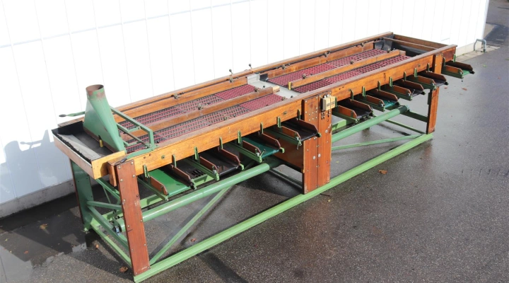 This grader is complete with screens for flower bulbs. But with other screens this sorting machine also can be used for potatoes or mushrooms.