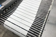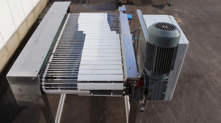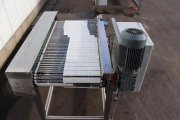 *This machine is used to divide one line into two packaging lines for trays of mushrooms.