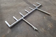 A pot fork is a practical aid. A pot fork is used to take several pots off a belt conveyor at the same time and put them down at another location. This saves time and the distance between the pots is more even.