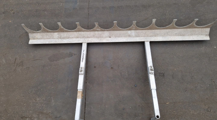 A pot fork is a practical aid. A pot fork is used to take several pots off a belt conveyor at the same time and put them down at another location. This saves time and the distance between the pots is more even.