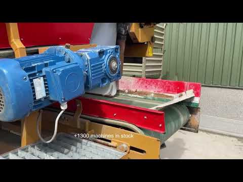 - Una cinta de descarga situada debajo de los rodillos transporta el producto a la primera cinta de descarga transversal.