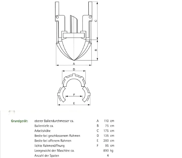 - Base unit: upper bale diameter approx. 110 cm