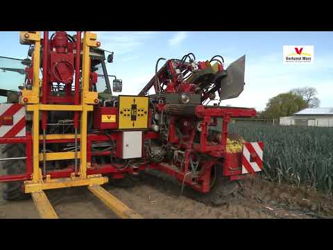 Verhoest cosechadora de puerros Llenadora automática de platos – llenado horizontal con puerro con 10 rodillos