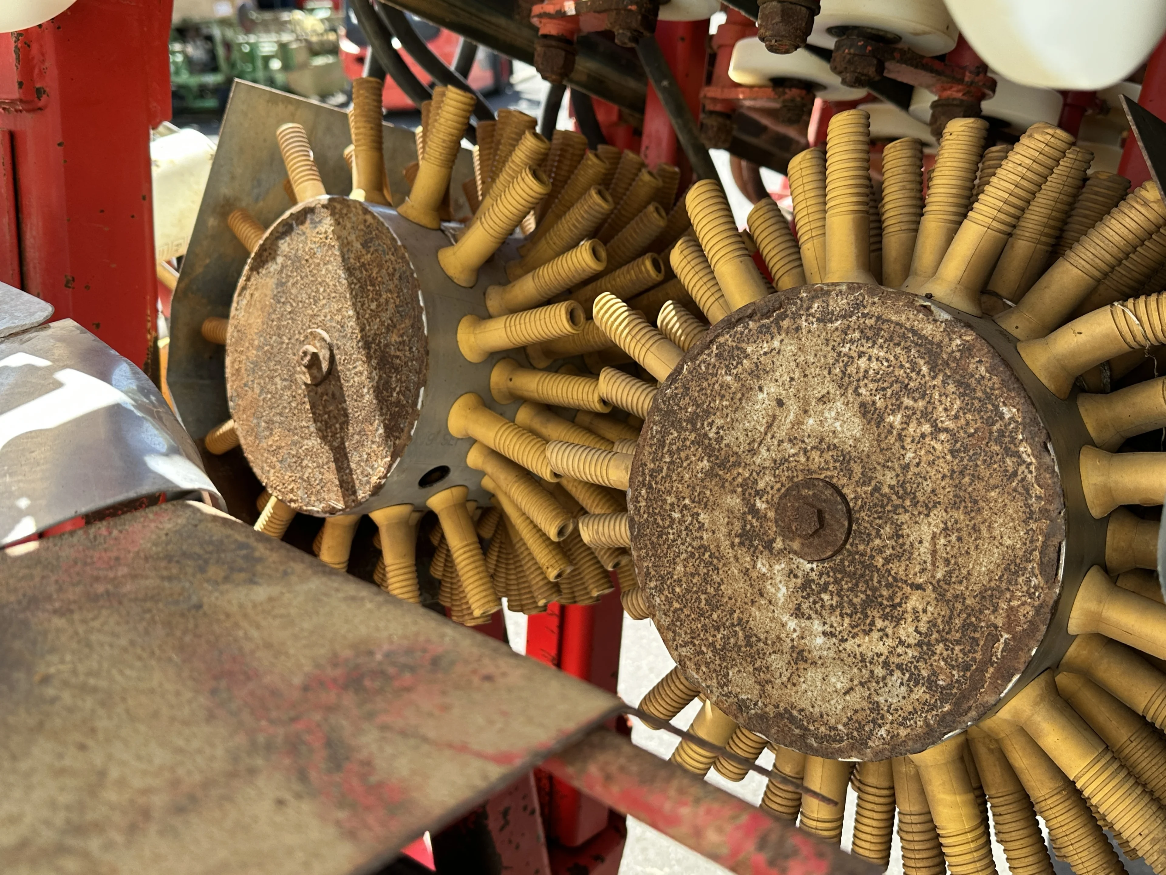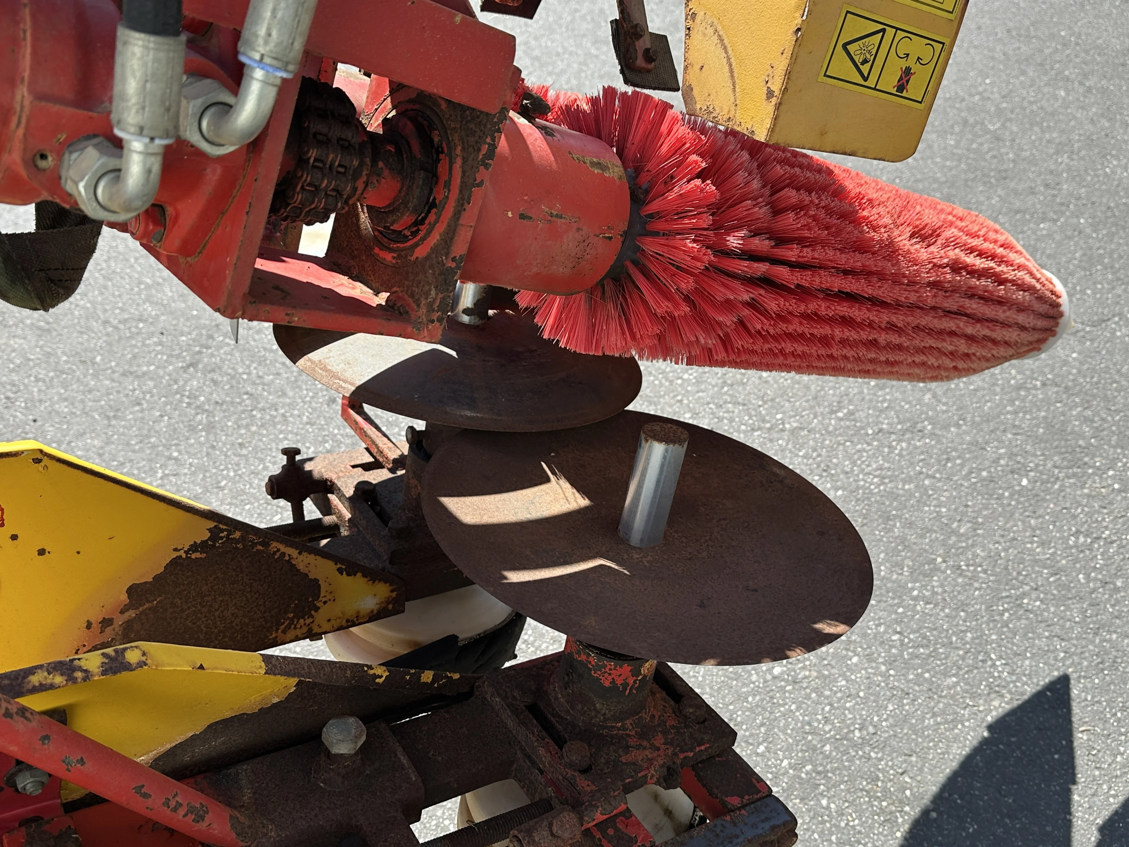 - Dos cepillos delanteros para levantar las hojas y dos cuchillas inferiores para cortar el puerro al largo deseado.