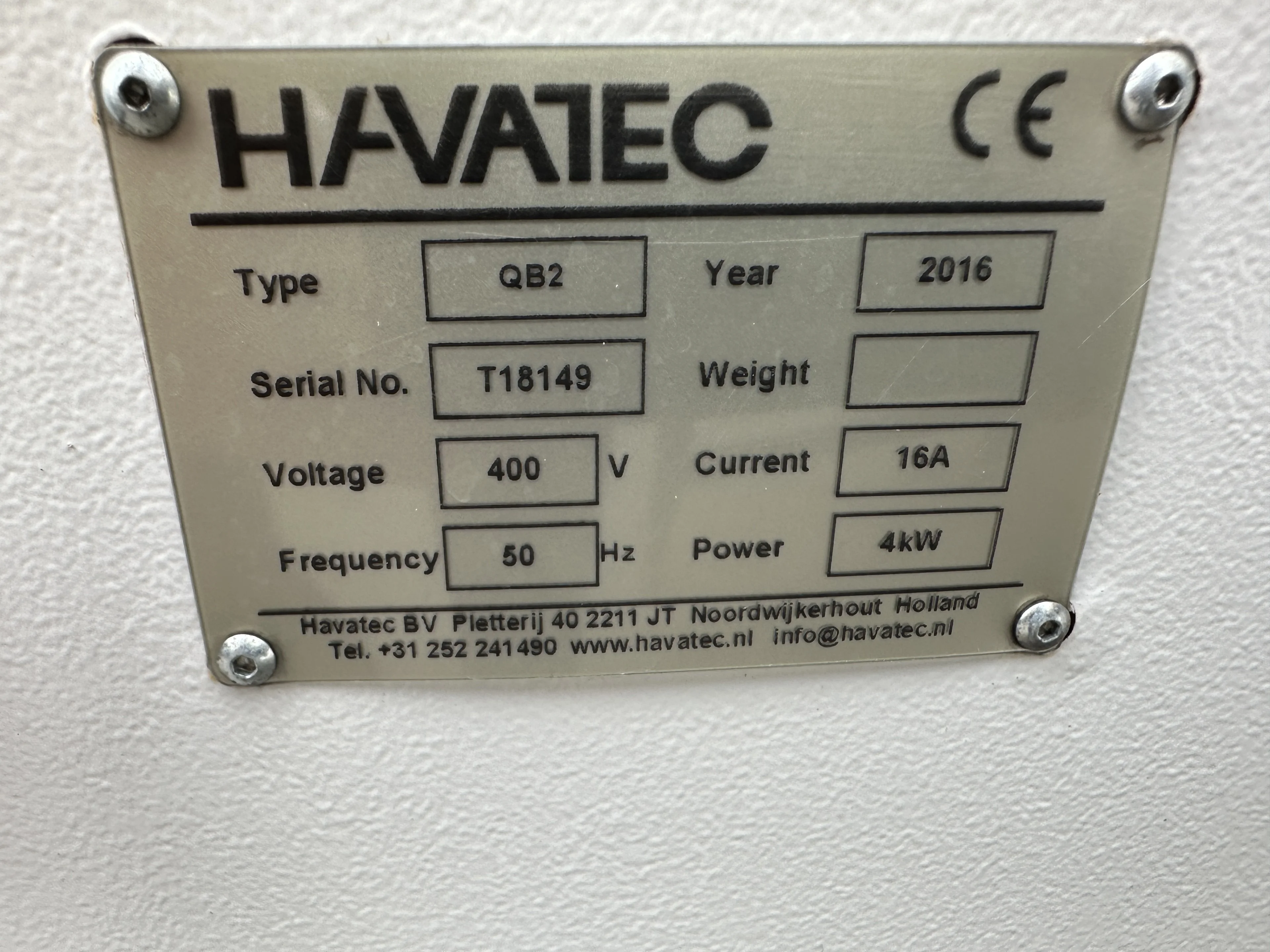 - Machine contrôlée annuellement par Havatec avec entretien annuel