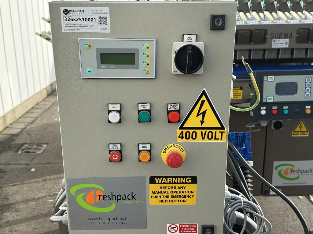 Sorma PC10 126 peseuse avec remplisseur de barquettes/plateaux (ACM 115) et dénicheur (DP4 115)