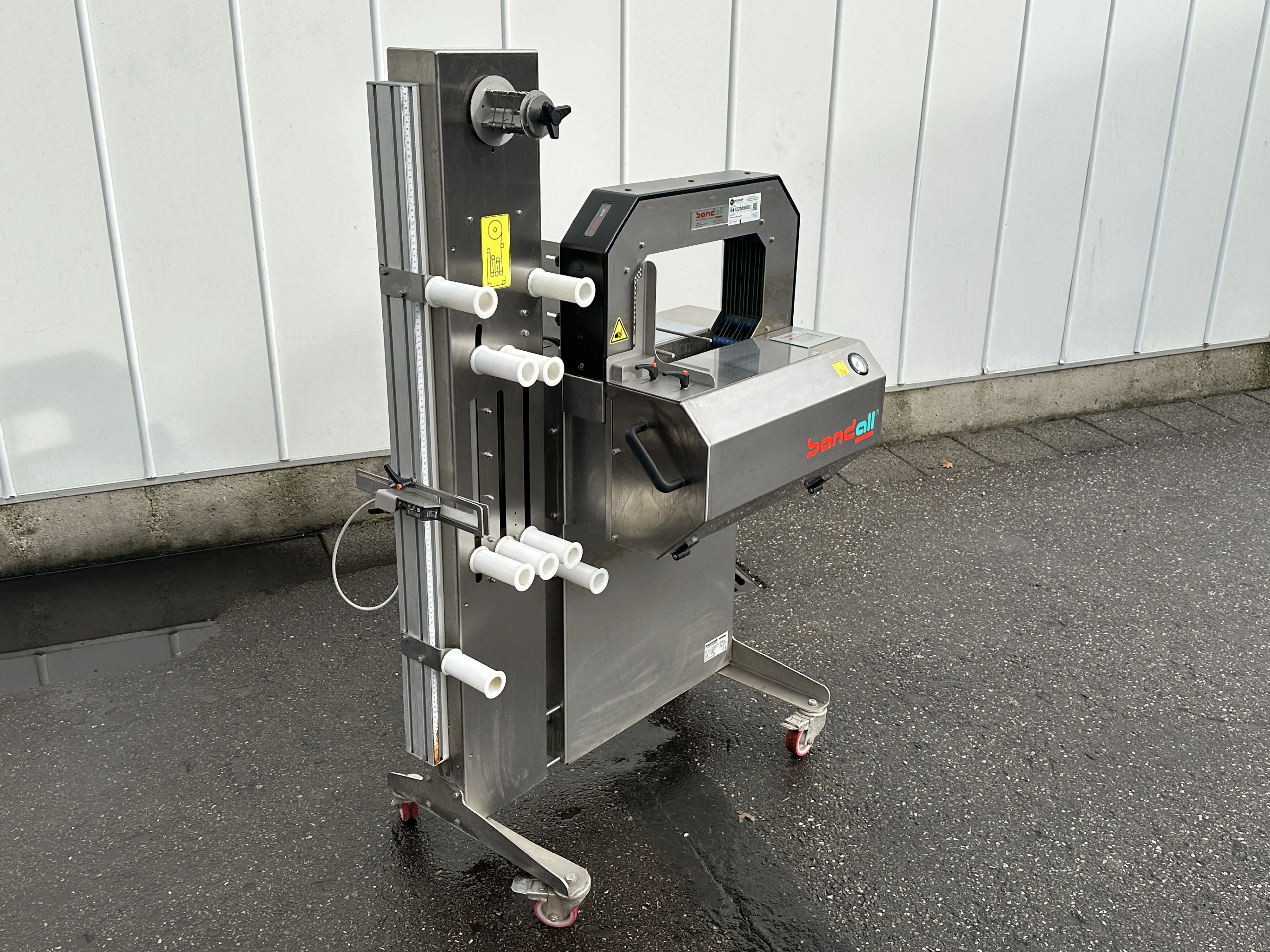 The Bandall BA32/20-102ERH is a stand-alone banding / bundling machine (often used in printing/graphics, food, and general packaging) that wraps products with a paper or film band, then tensions + seals it.