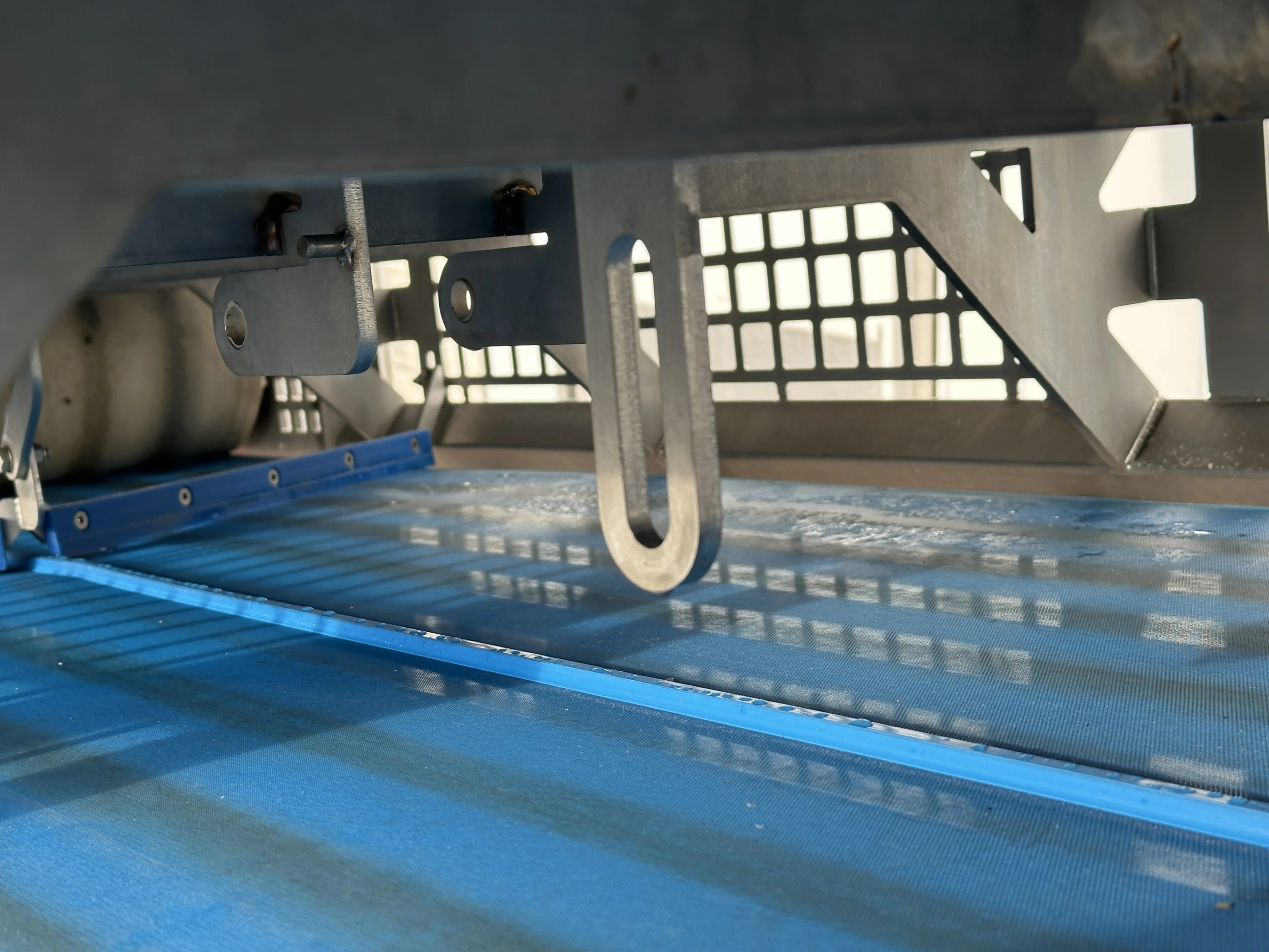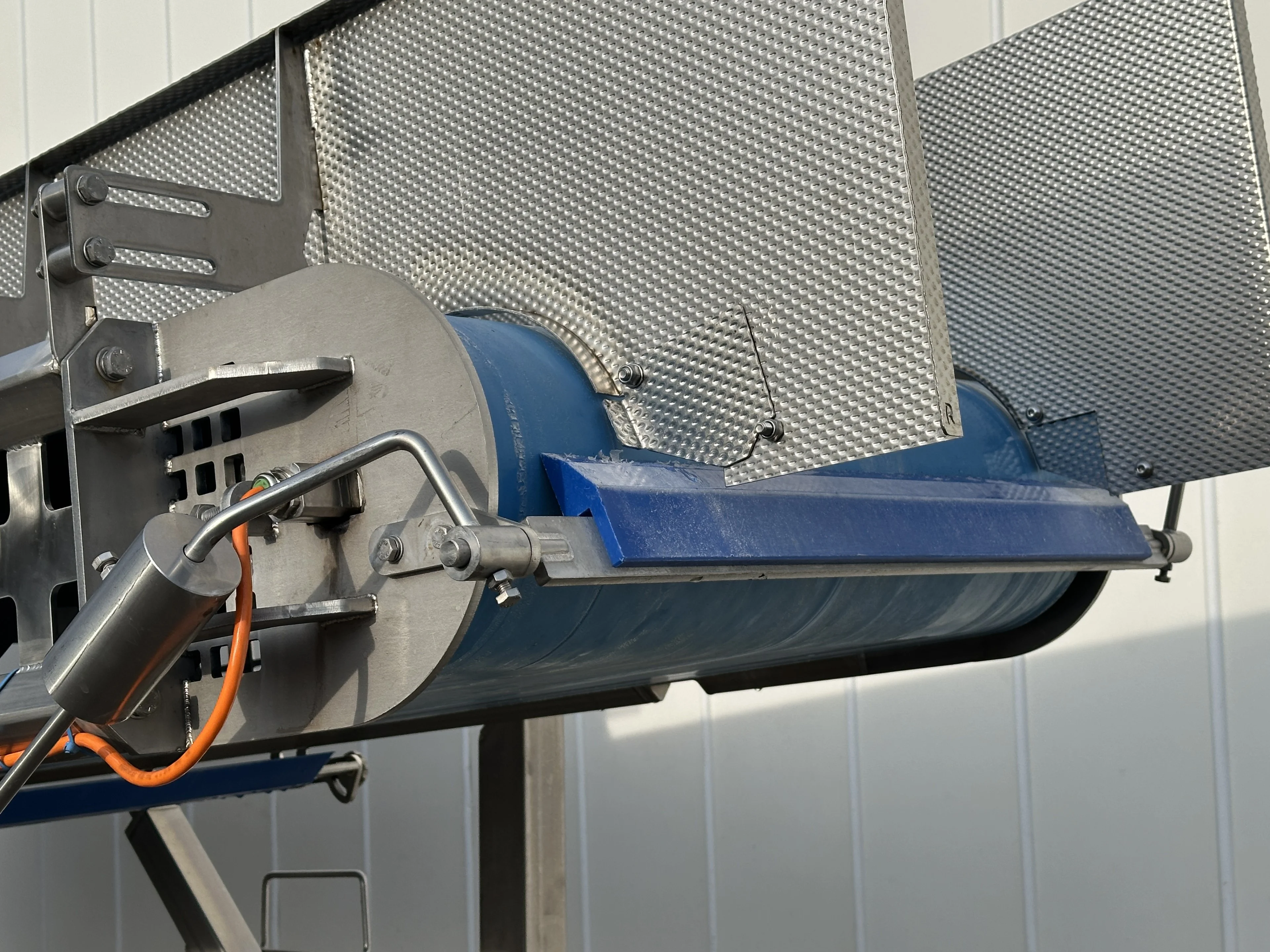 - Belt scraper with counterweight.