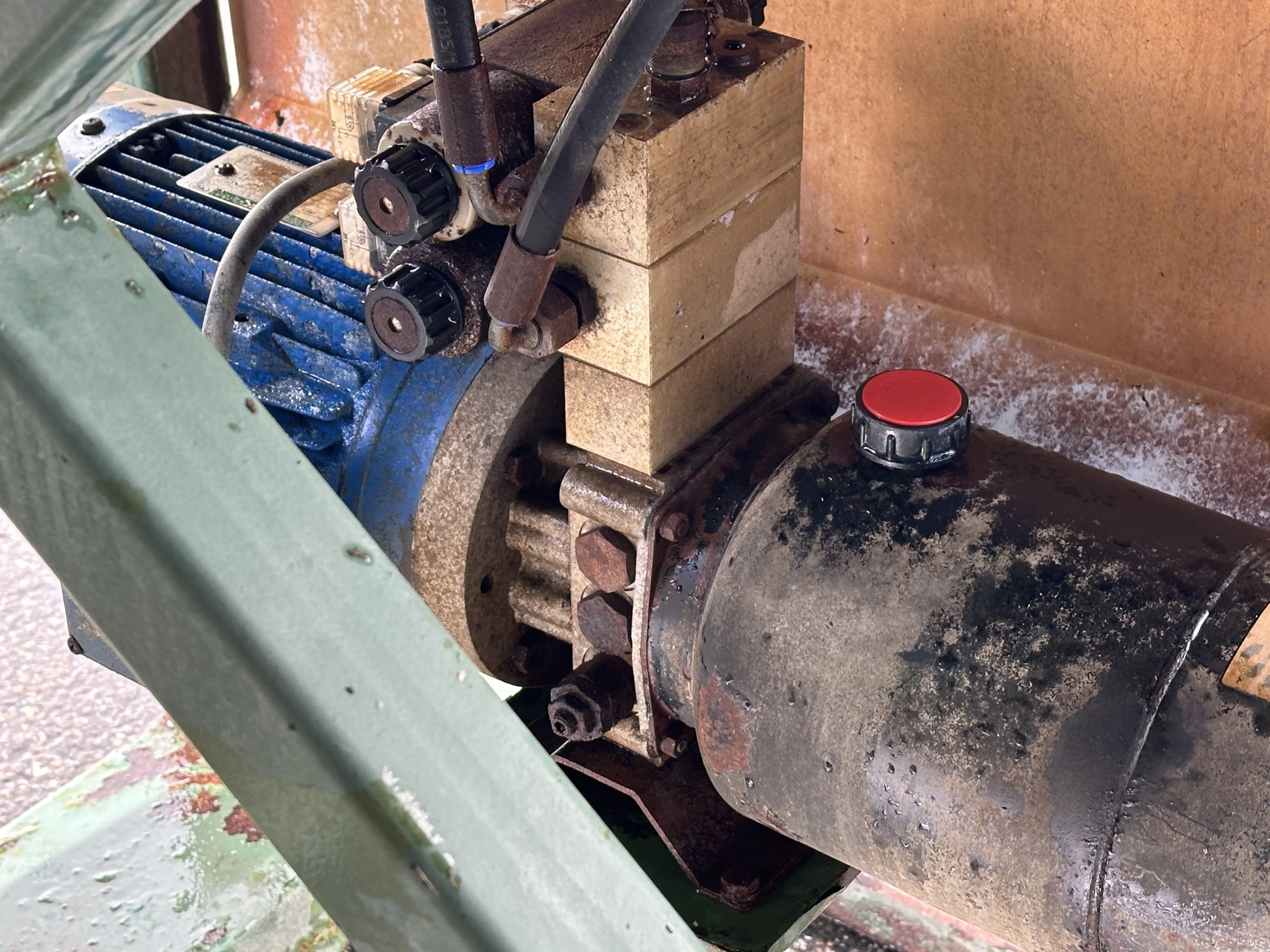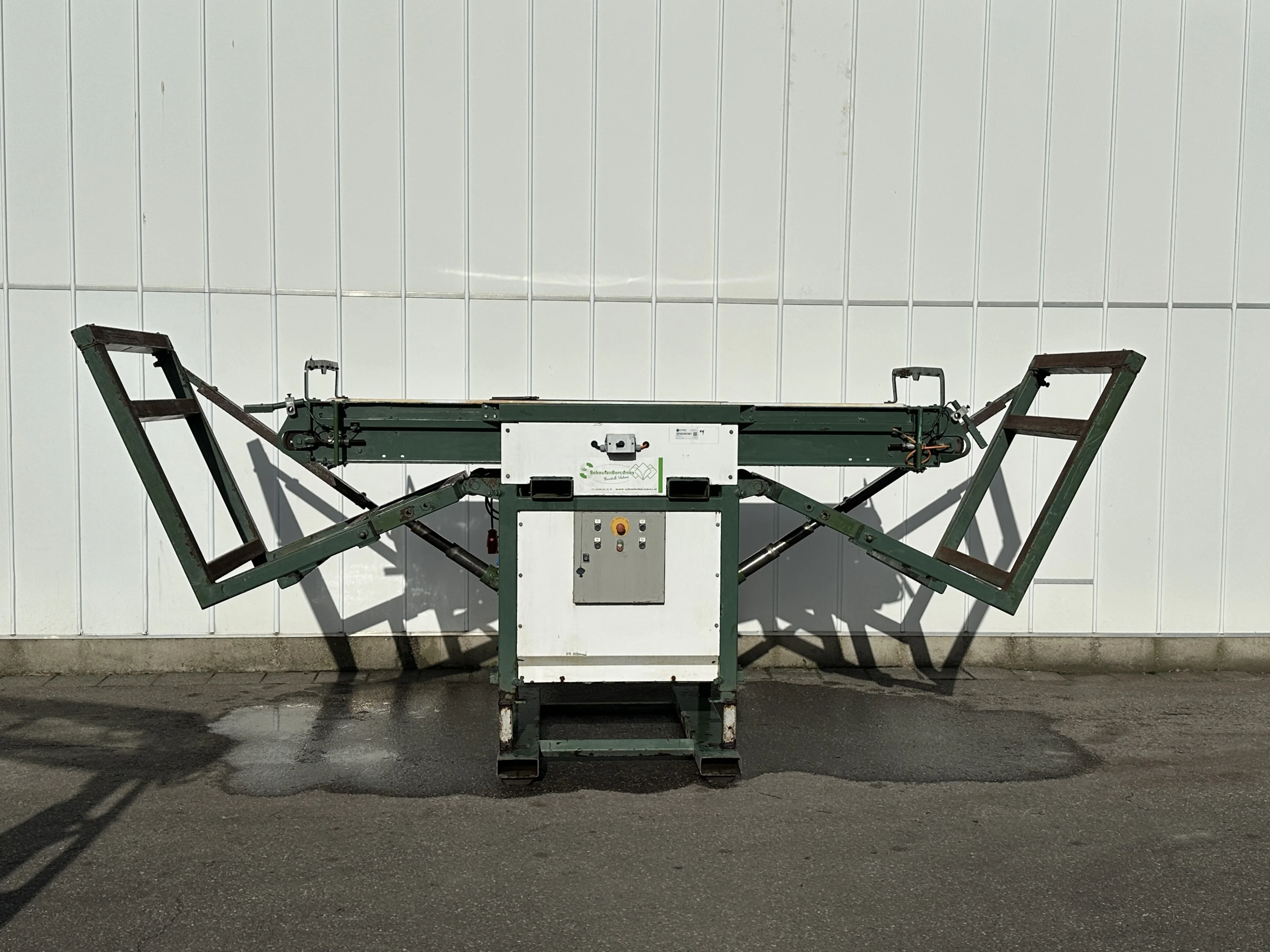 Schouten box filler with hydraulic boxlifting arms.