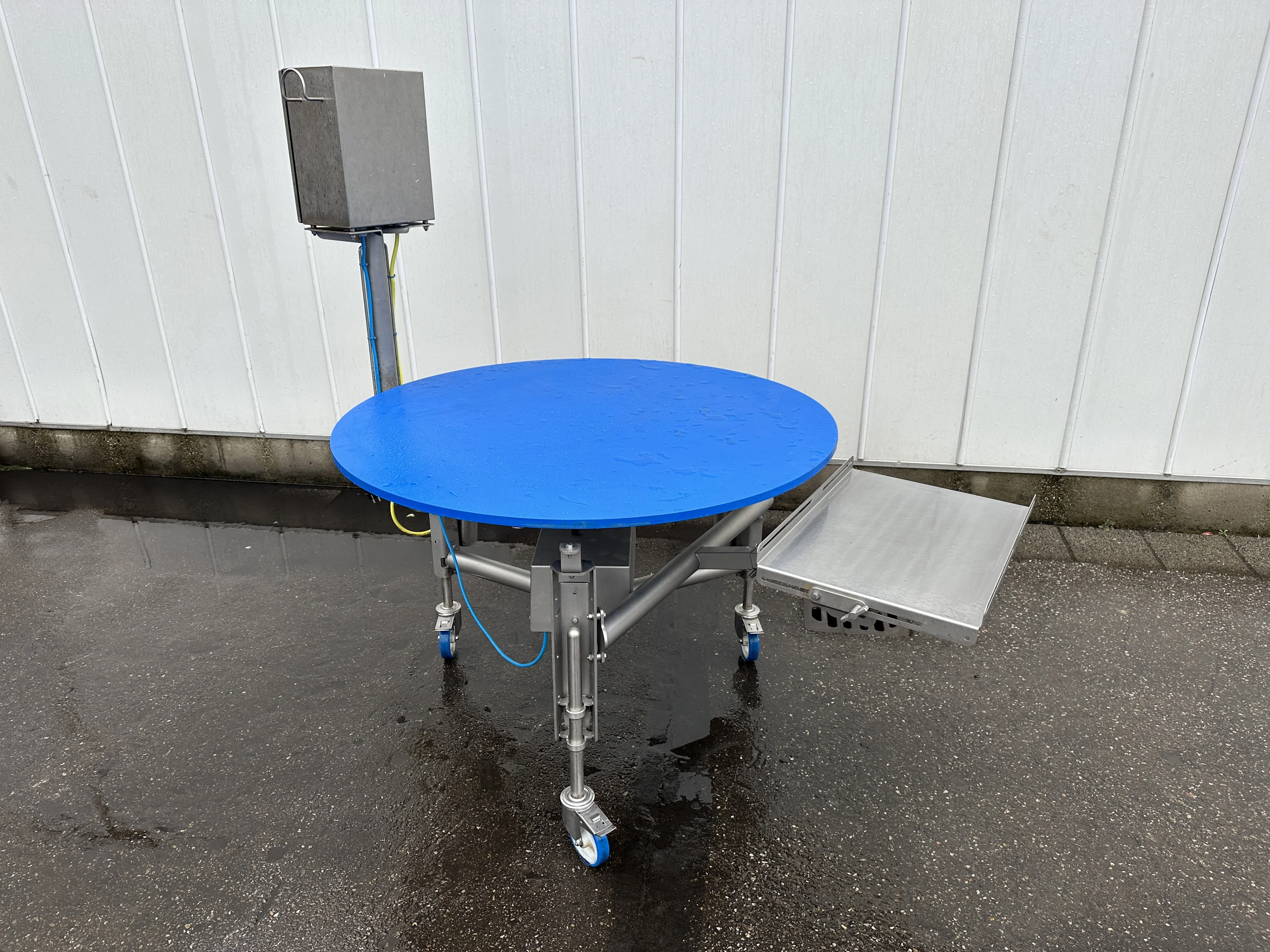Marvu forgóasztalo rozsdamentes acél, kék PP tetővel, 125 cm
