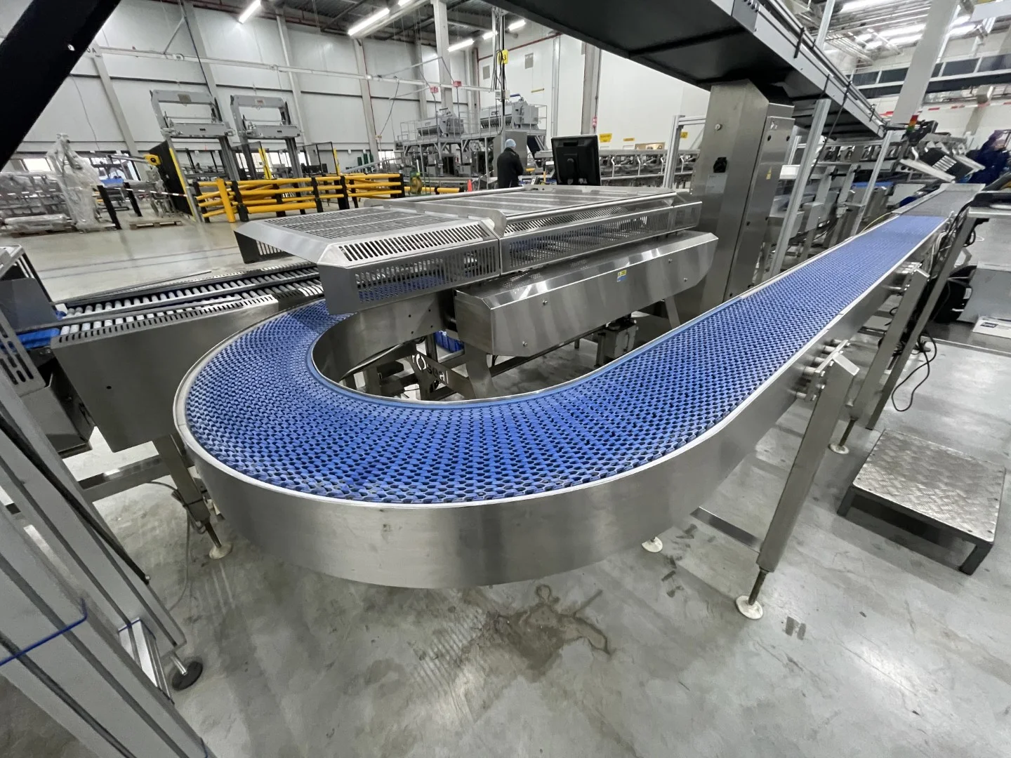 • 180° curved modular belt conveyor with stainless steel frame