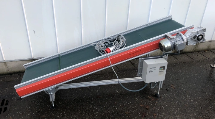 Optional with this machine: New conveyor with cleats, assembly included. Extra costs: €1.000,-