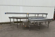 Instead of a turntable, this system ensures that products arrive at a fixed position, allowing the operator to pack quickly and comfortably. Thanks to the combination of a 200 x 23 cm roller conveyor with small free-running wheels, a non-powered roller conveyor, and a powered stainless steel roller conveyor, this setup is ideal for a streamlined packing process, including supply and discharge of boxes or crates.