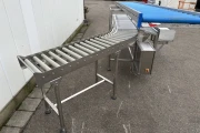 - Powered stainless steel roller conveyor for discharging full boxes or crates