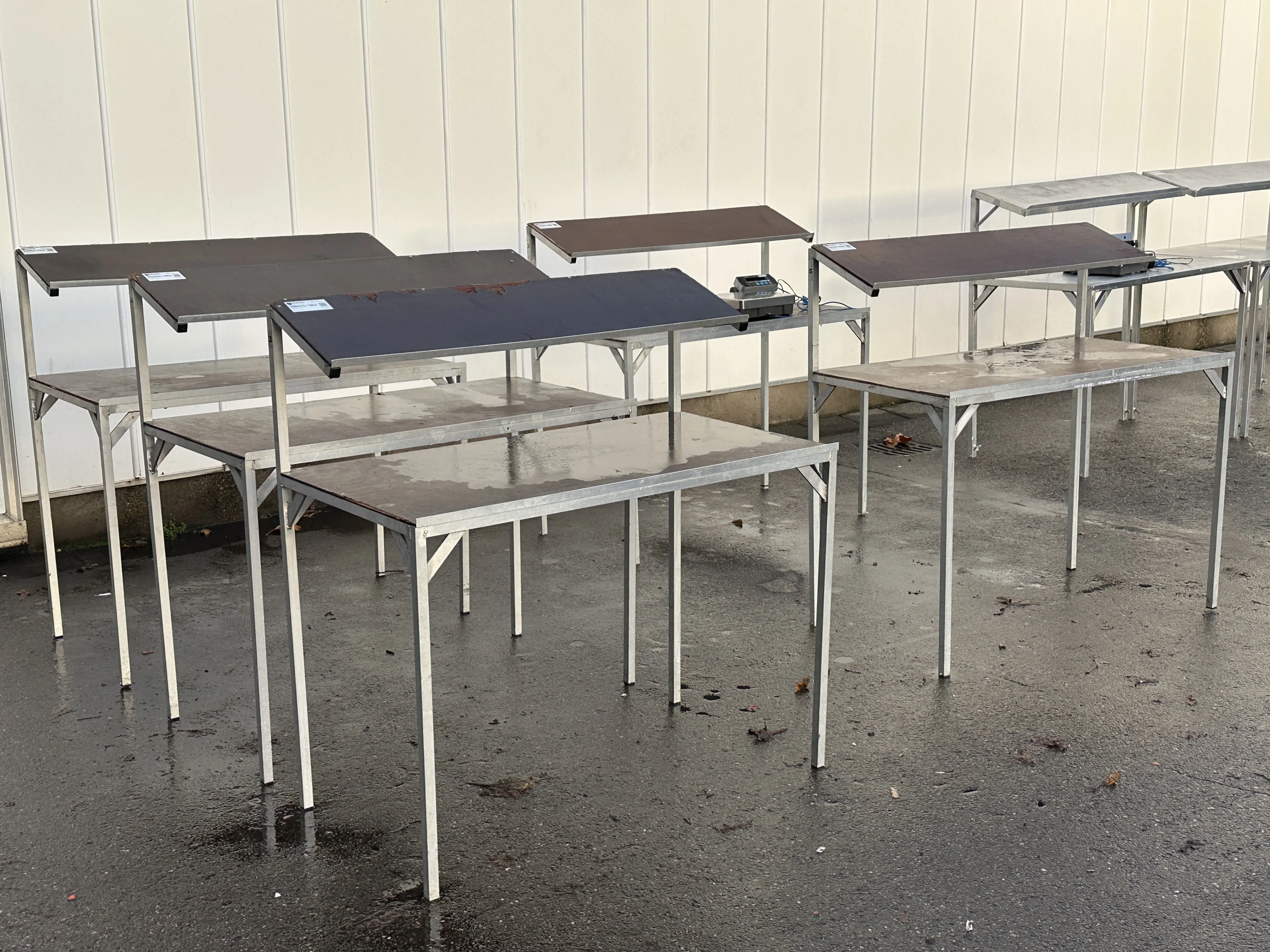 - 8 tables with wood and 2 tables full aluminium
