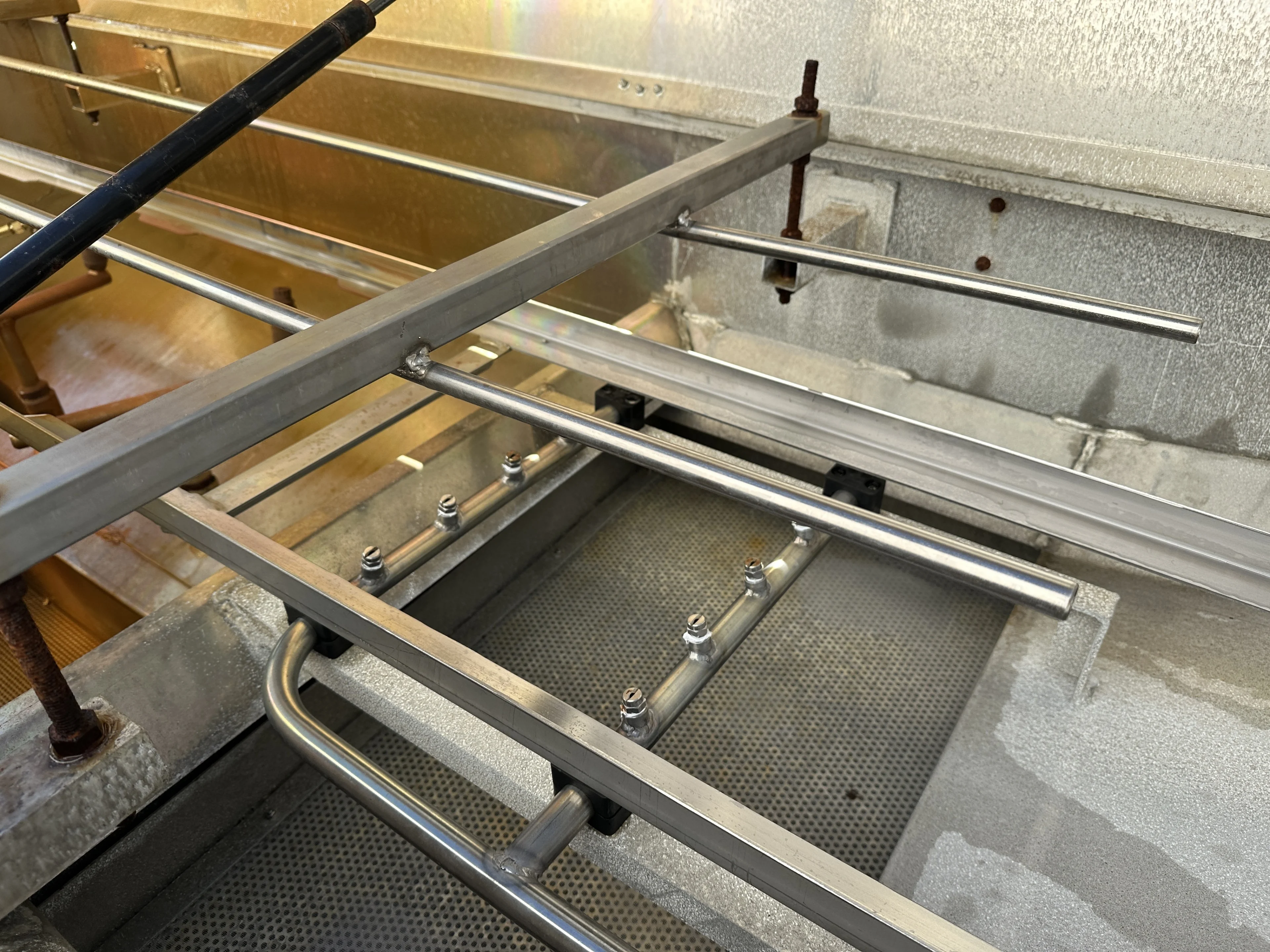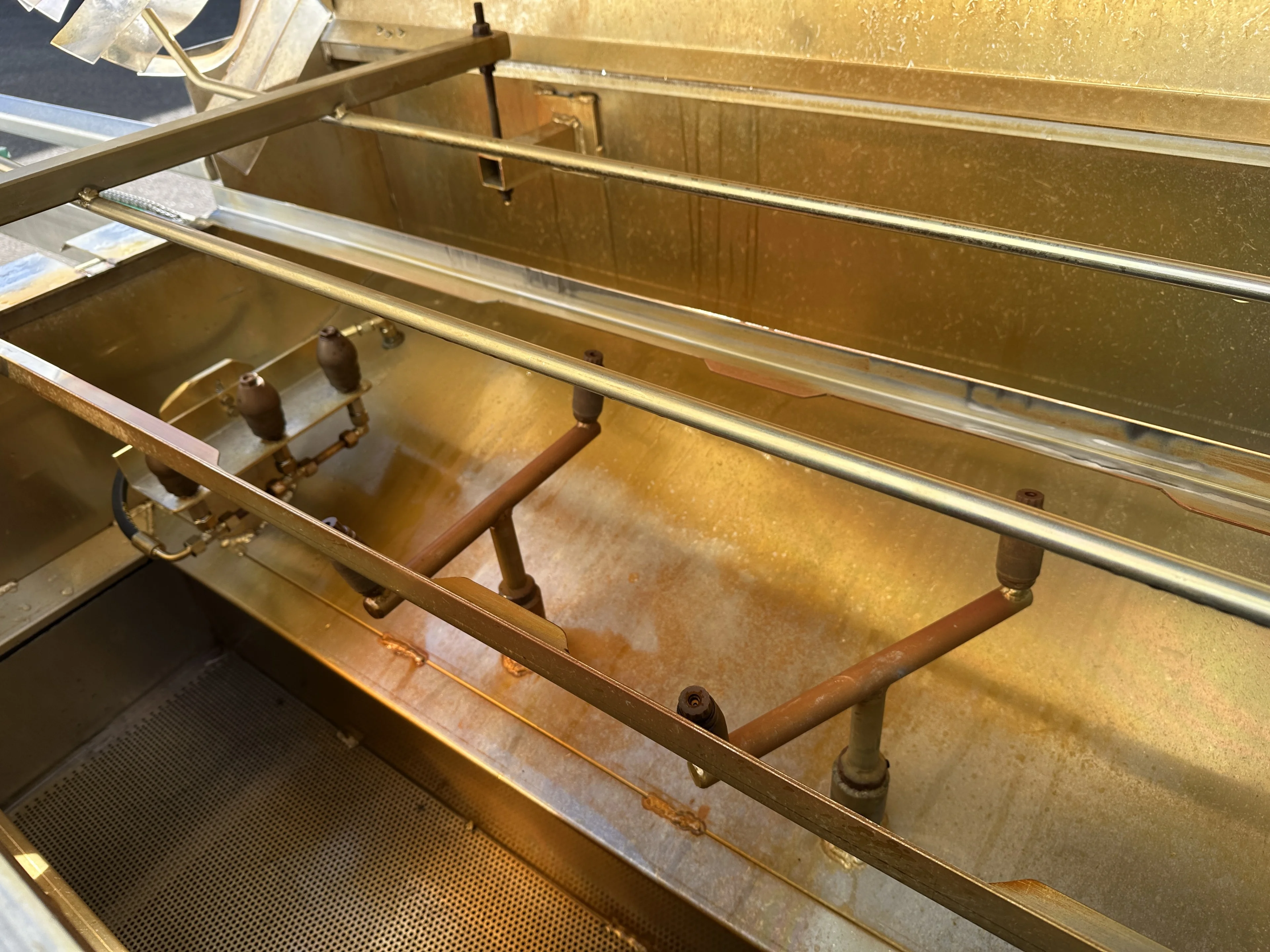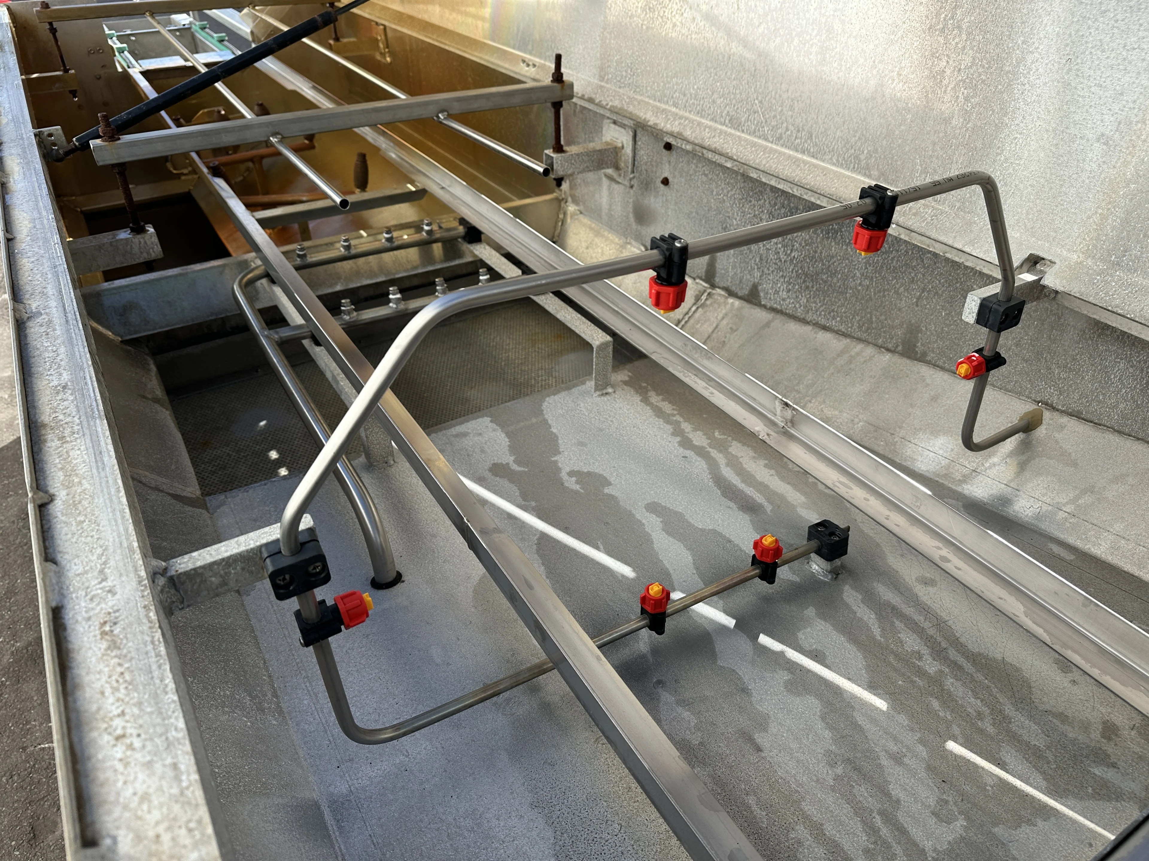 Lavavassoi con sistema Dosatron, utilizzata per la pulizia di vassoi per tulipani da 60 x 40 cm.