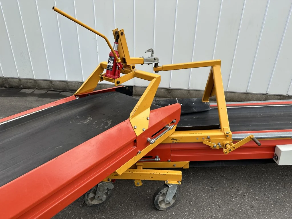 Deze duoband is een zeer flexibele schakel bij het in- en uitschuren. Omdat ze in lengte verstelbaar zijn en omdat de beide banden ten opzichte van elkaar in iedere gewenste hoek gezwenkt kunnen worden. De valhoogte tussen de twee banden kan met een draadspindel op de loopwagen tot het minimum worden beperkt. Uw product is dus bij deze telescoopbanden in goede handen.