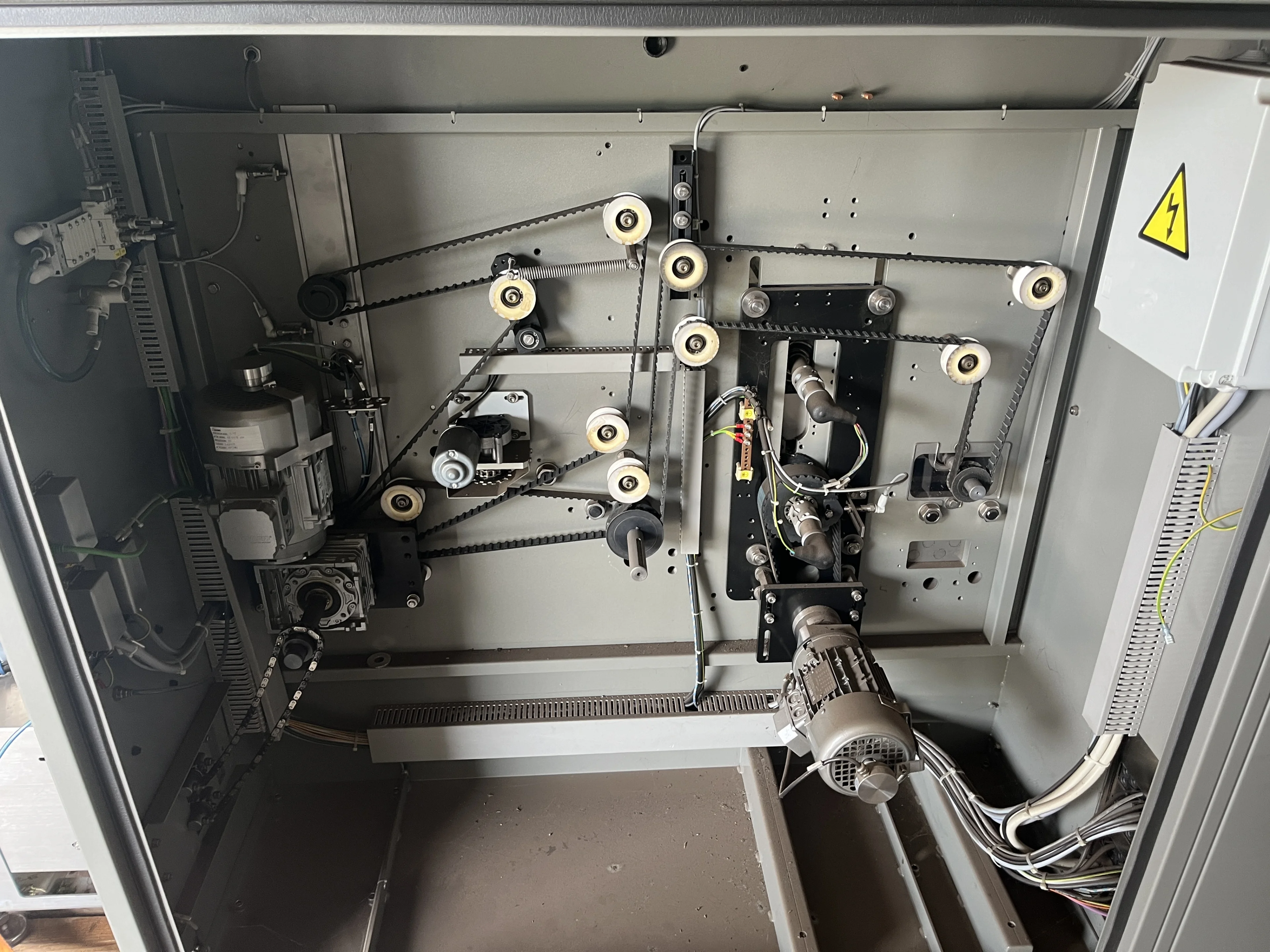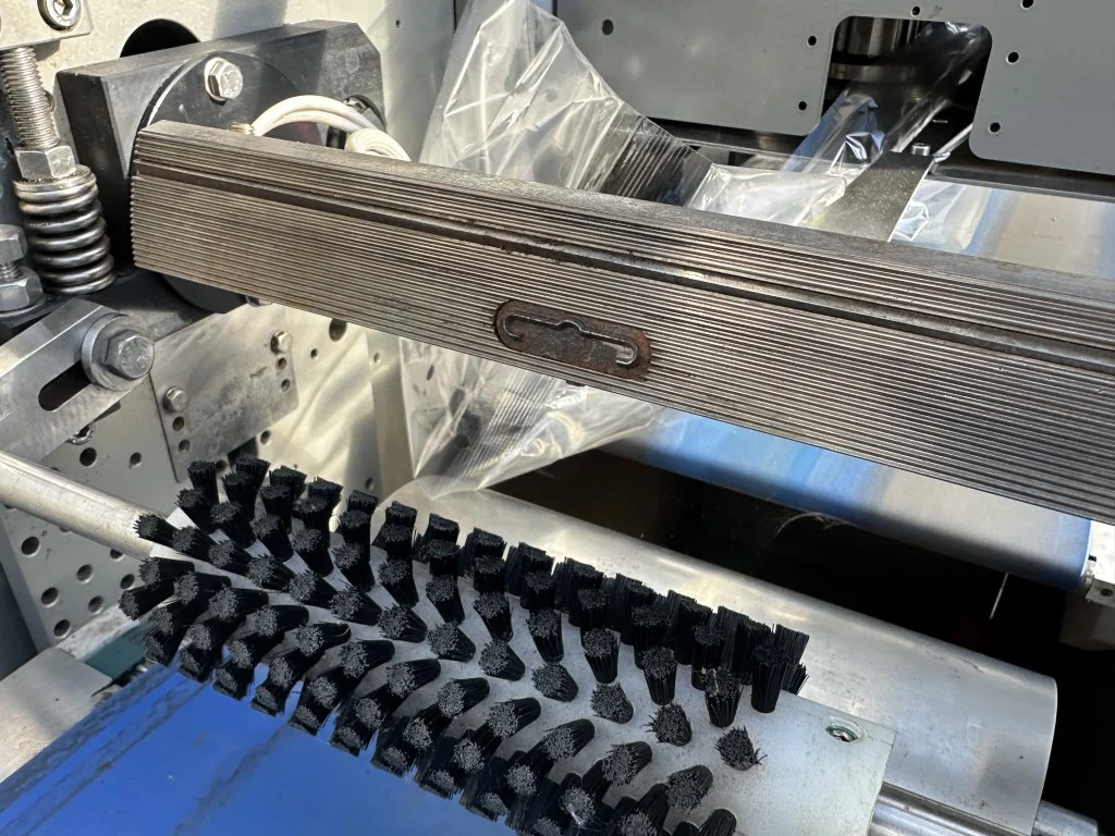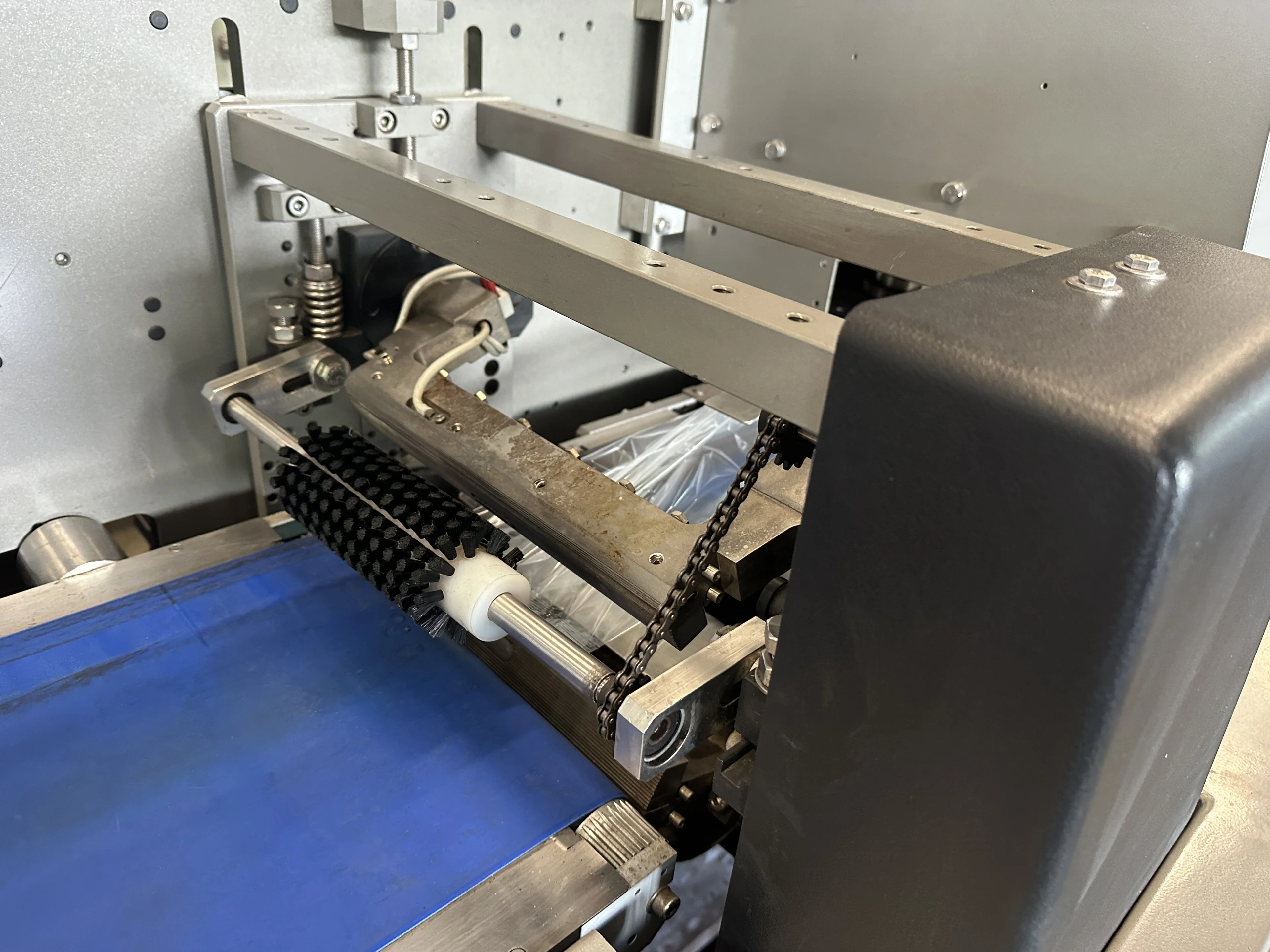 - Invoerband met strepen als indicatie waar het product geplaatst kan worden. (zit geen lengte sensor op de invoerband)