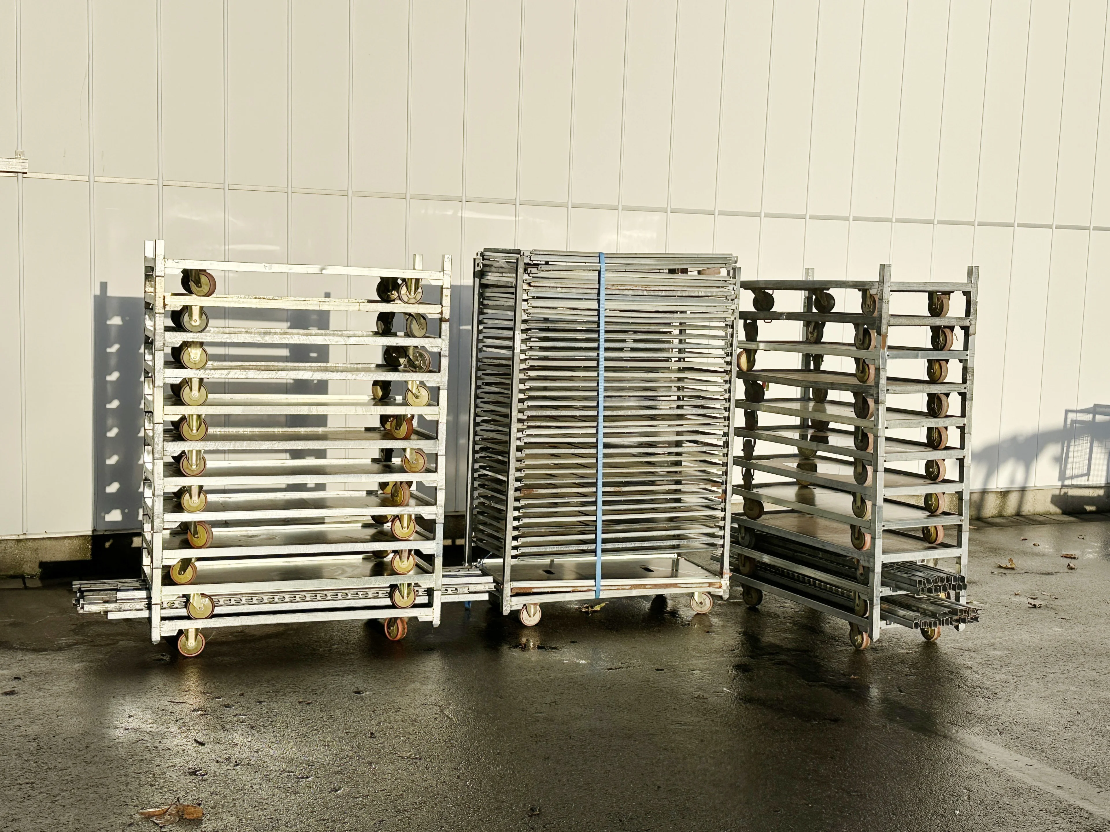 Their ideal dimensions, manoeuvrability and adjustability of the space between the sheets make the Danish trolley ideal not only for transport. The trolleys can also be used as large shopping trolleys, storage containers or mobile shelving.