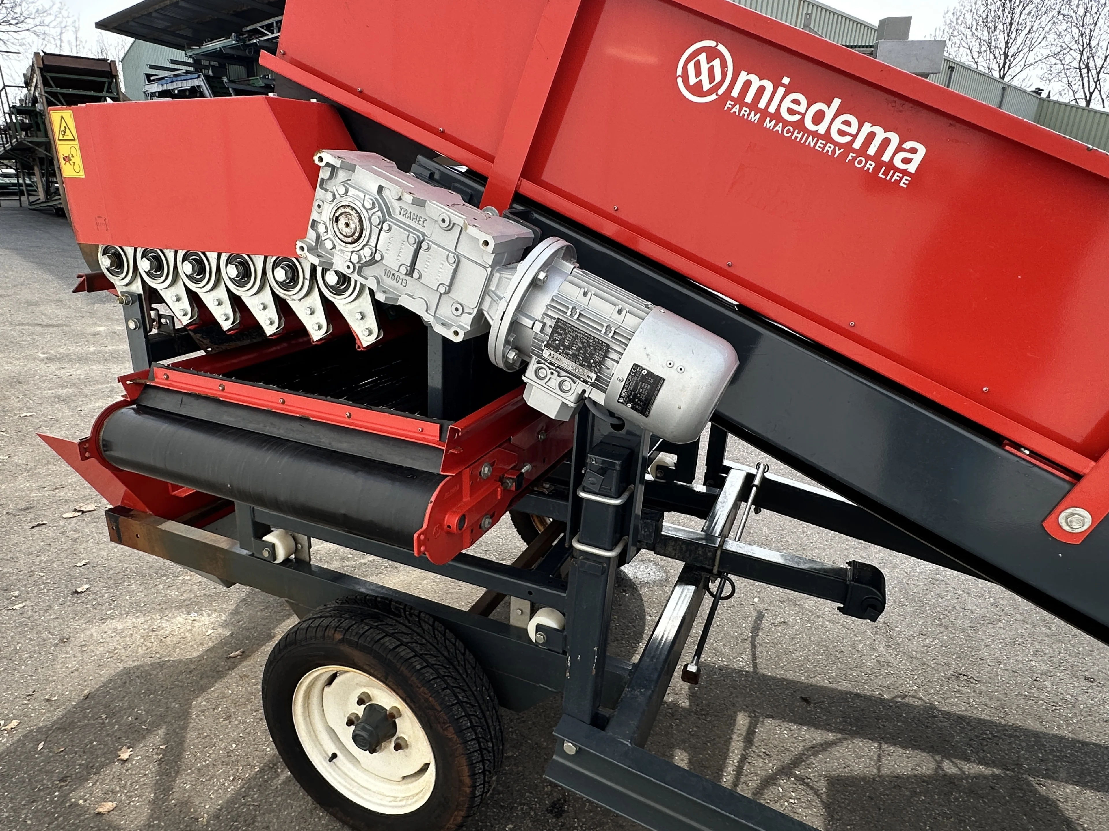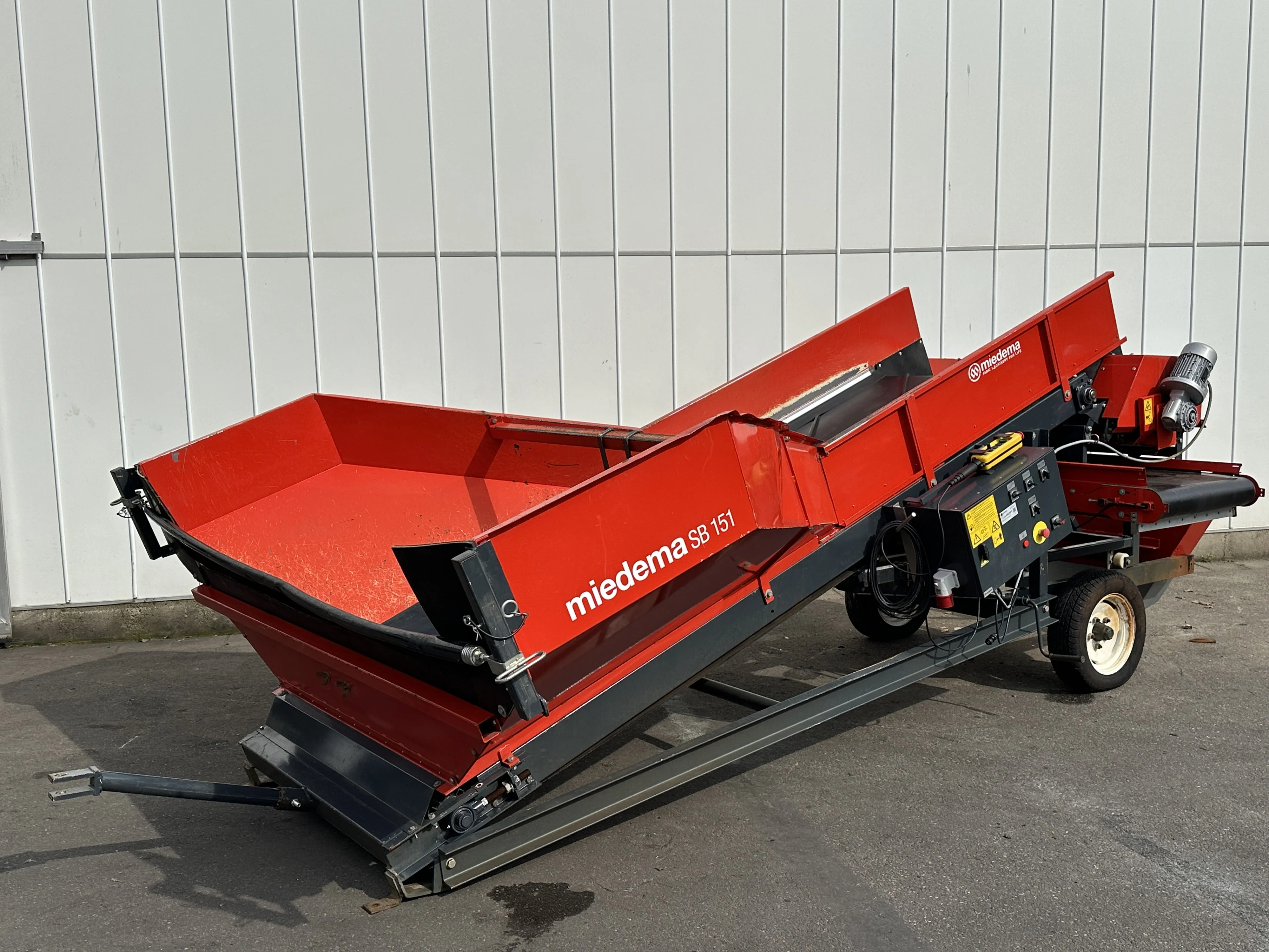 Miedema SB151 kosz przyjęciowy z wałkiem czyszczącym i 1 poprzecznym przenośnikiem taśmowym