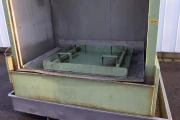 Maszyna jest przystosowana do dezynfekcji produktów w różnego rodzaju pojemnikach, takich jak skrzynie, tace siatkowe i kubiki, poprzez natrysk.