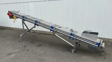 New Motion przenośnik taśmowe przenośnik płaski ze stali nierdzewnej z odciągiem 540 x 40 cm