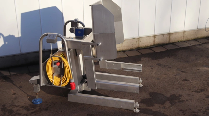 The Backsaver NT tipping machine is designed to empty standard DIN9797 200- or 300-liter meat carts, trolleys or buggies at a work table height.