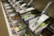 Linha de pesagem e ensacamento Affeldt para diversos tipos de frutas e vegetais, como couve de Bruxelas, cebola, alho, tomate e frutas cítricas.