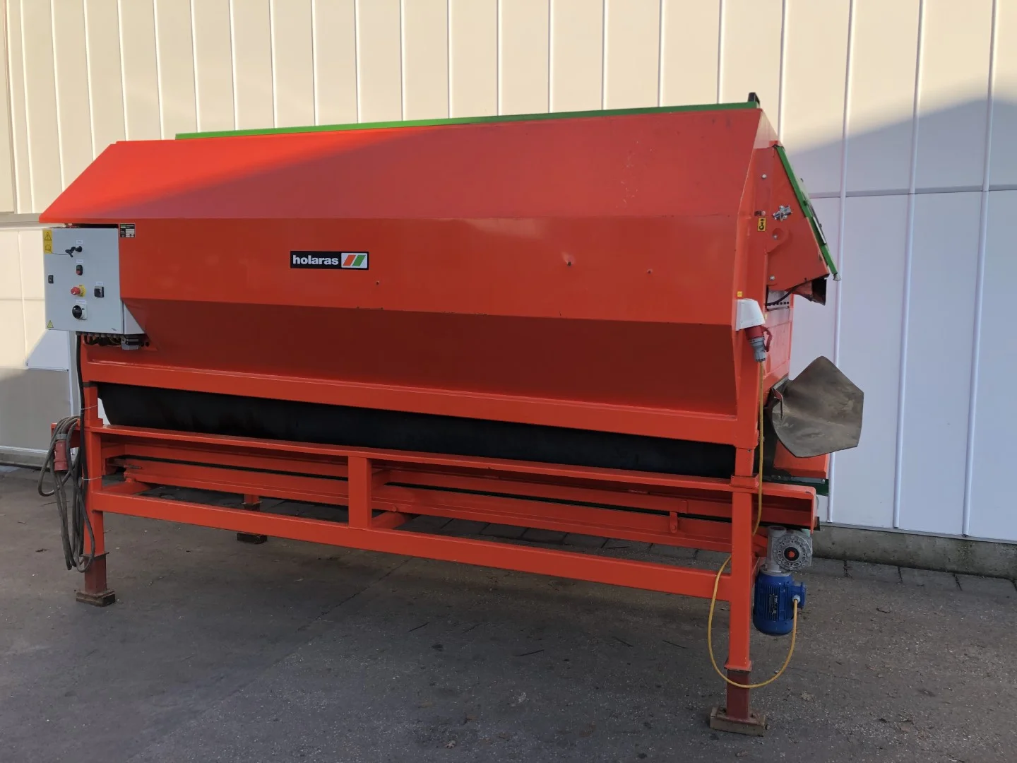 The vibrator-sieves are easy to change. The vibrator-sieves are available for almost all types and sizes of onions and shallots. Seed onions, picklers, medium and ware-onions, shallots, are topped without difficulty by the Holaras topper without being damaged. It is important to use a sieve which is suitable for each kind of onion. Regular supply is wanted. One can achieve this by using a hopper.