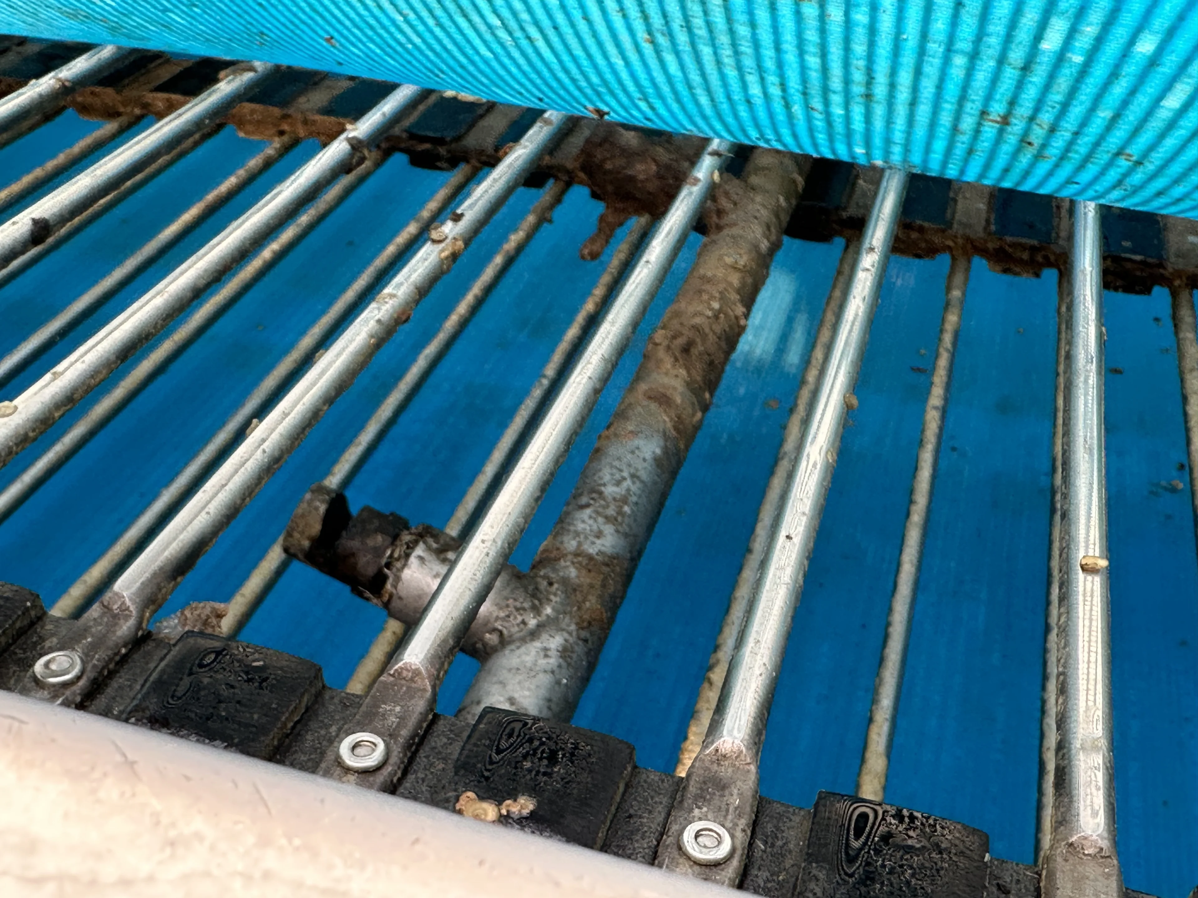 - The bar belt/web conveyor is covered with a flat belt. This belt can be dismantled, allowing the normal bar belt to be used.
