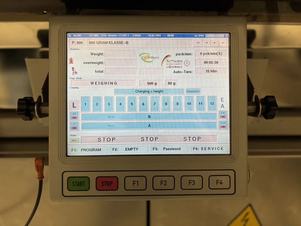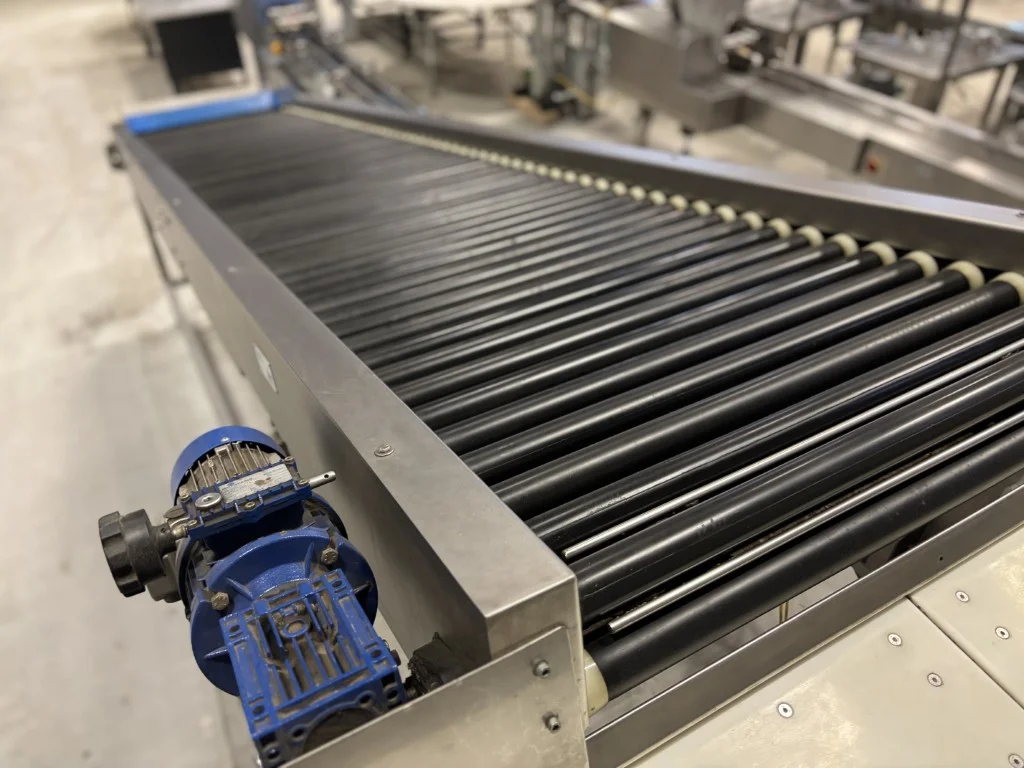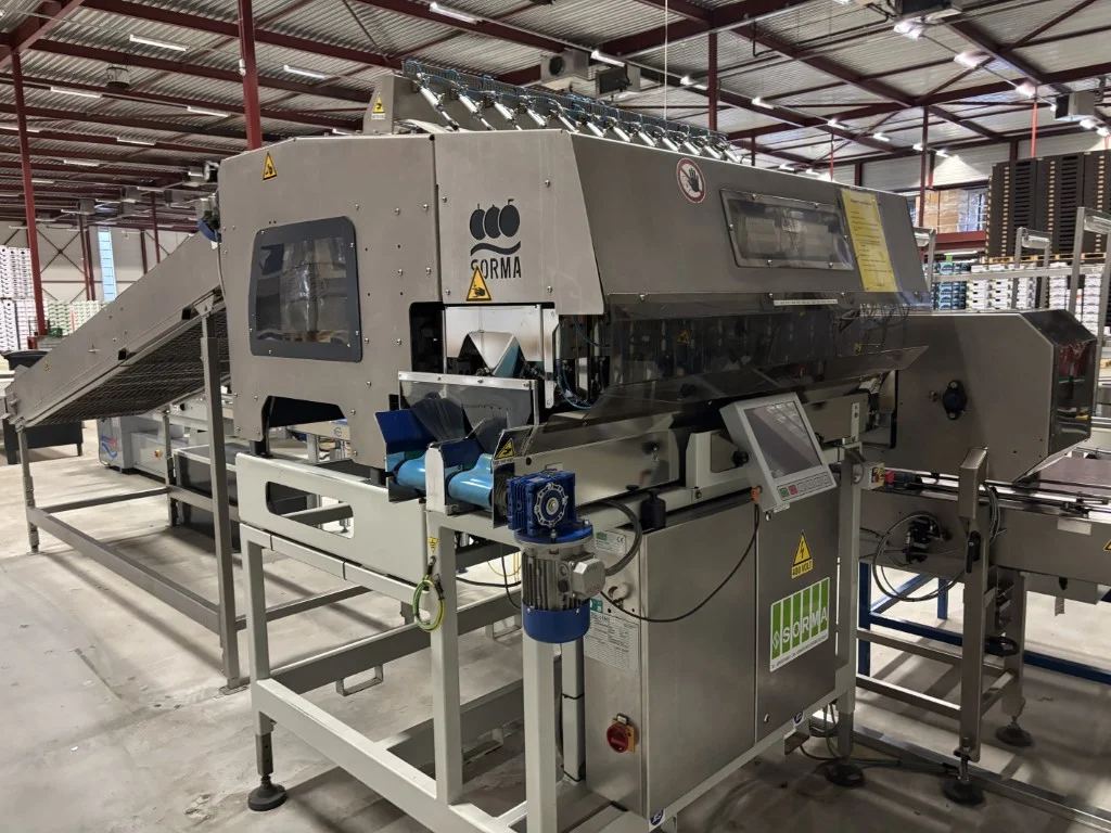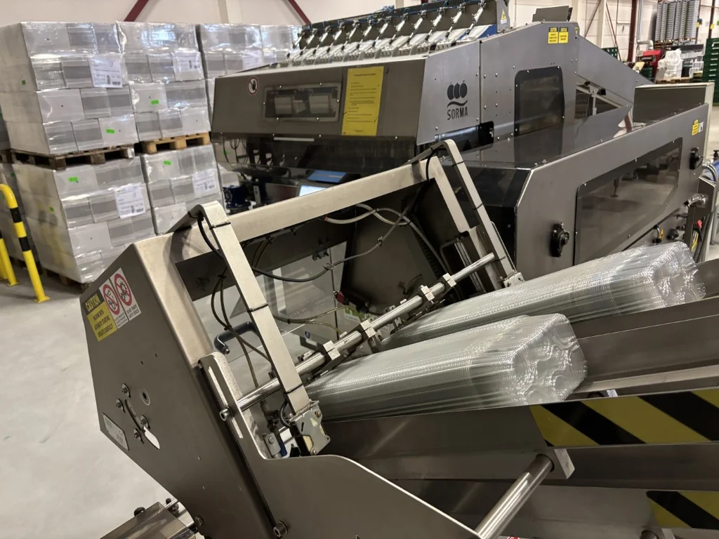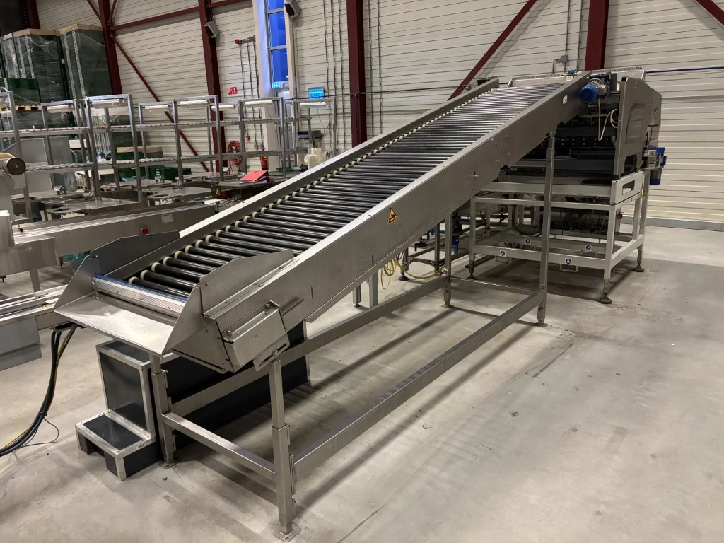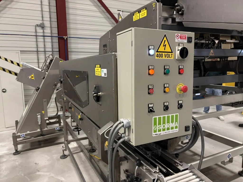 Sorma W12-126 Linha de pesagem Sorma W12-126 com elevador, enchedora de bandejas e desempilhadora.