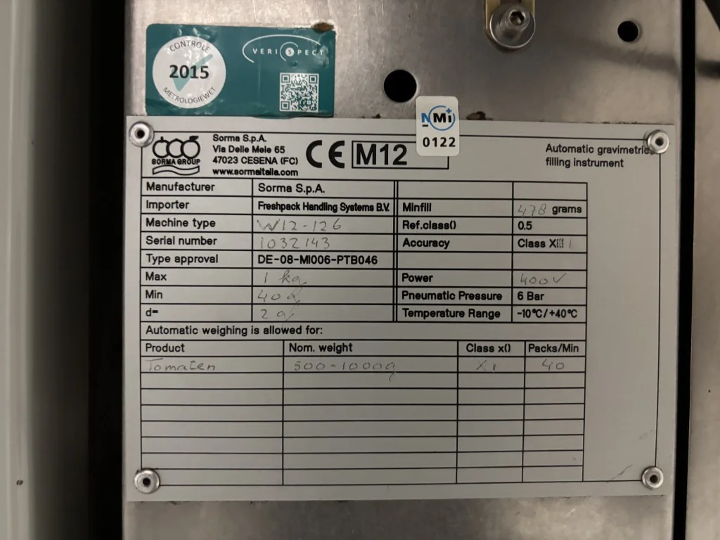 | Number of weighing heads: | 12 |
