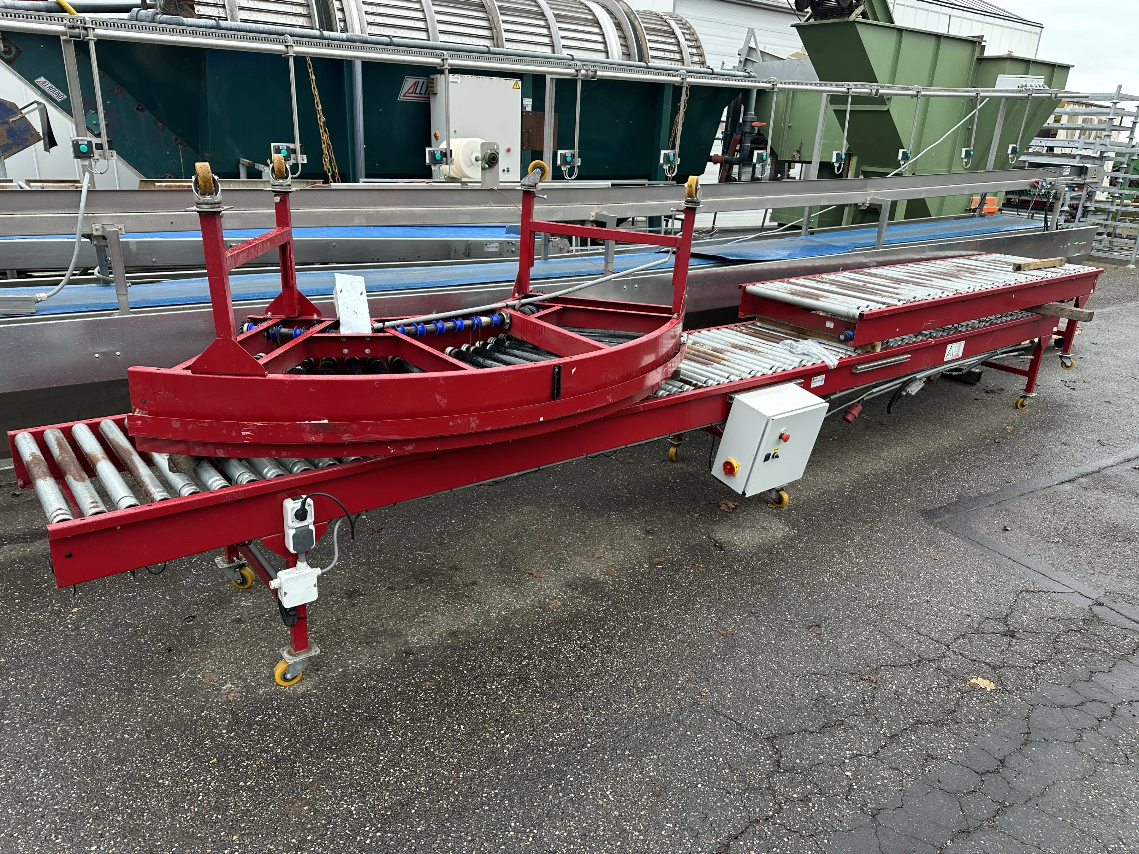 Taks transportador sobre rolos Dirigido, 1070 cm x 70 cm com curva de 90°