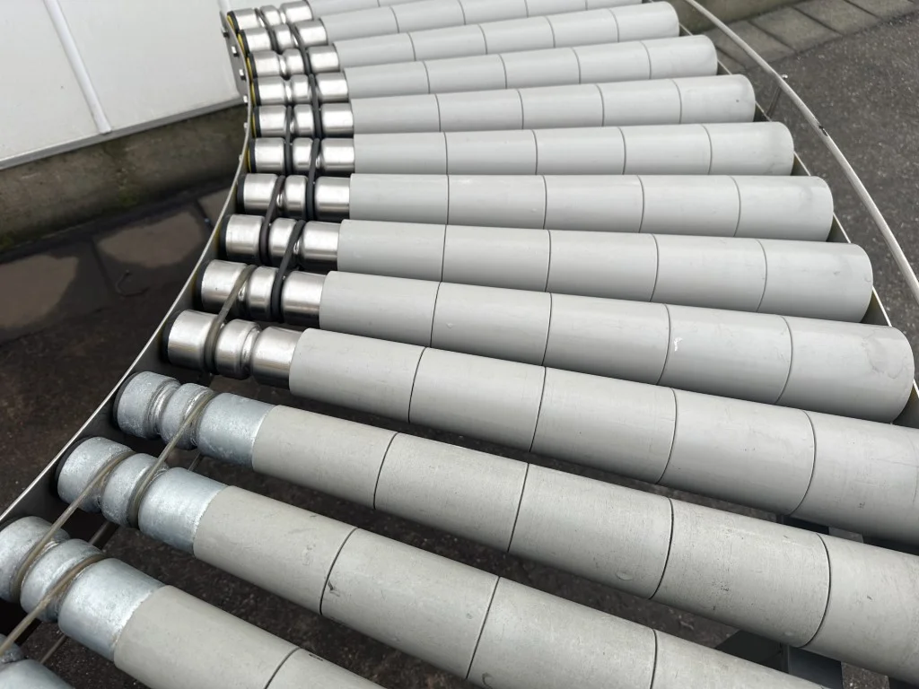 Transportador de rolos curvo a 90°