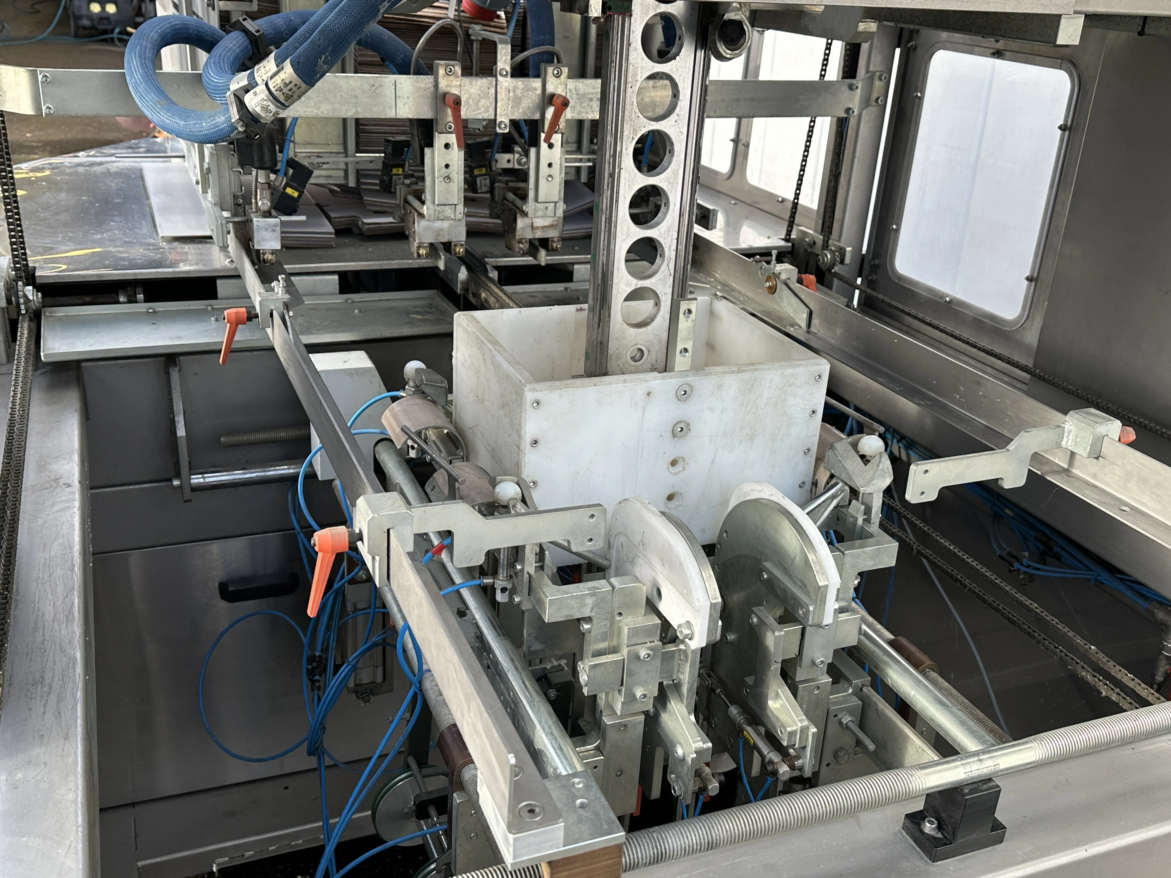 This box erecting machine is designed for reliable and efficient forming of various box types. The machine combines mechanical, electrical and pneumatical operation and is suitable for high-capacity production environments.