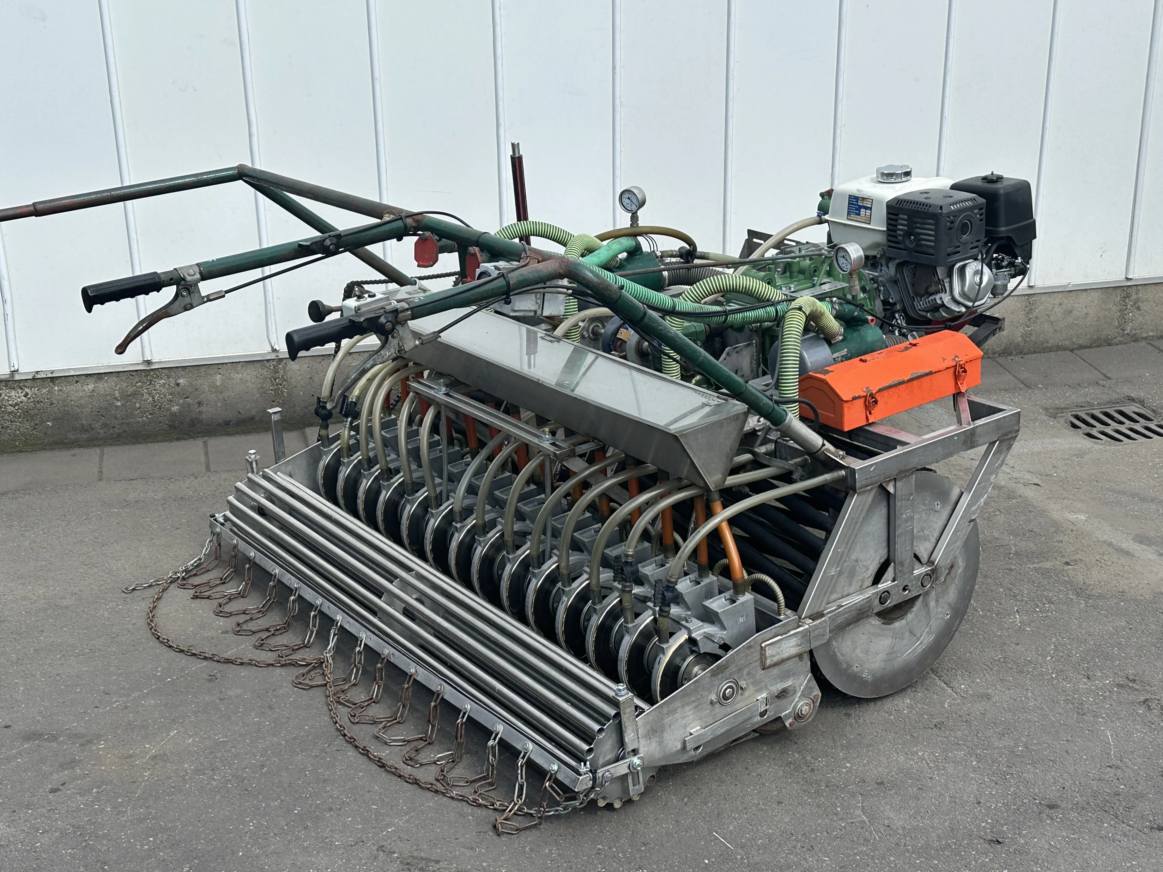 - Fixed steering wheel, right seeding coupling, operator walks behind the machine