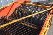 Harvesting machine for onions and potatoes with storage to the rear.