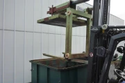 • After the disinfection time the cubic box will be lifted by the fork lifter with frame and put on a lorry The frame is available again for the next cubic box. The cross will by transported by hand to a leakage aria (place). The cubic box can be taken of the leakage place with only a fork lifter.